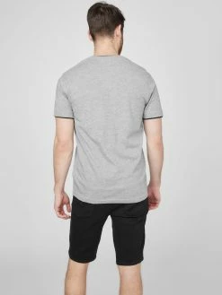 This jersey heathered-knit tee features a cool layered design and is finished off with a V-neck and short sleeves.