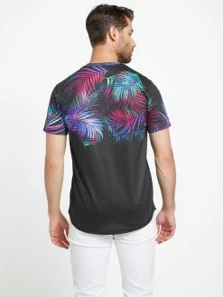 Stay cool and vibrant with this graphic tee. Featuring an allover tropical neon graphic and crew neckline.