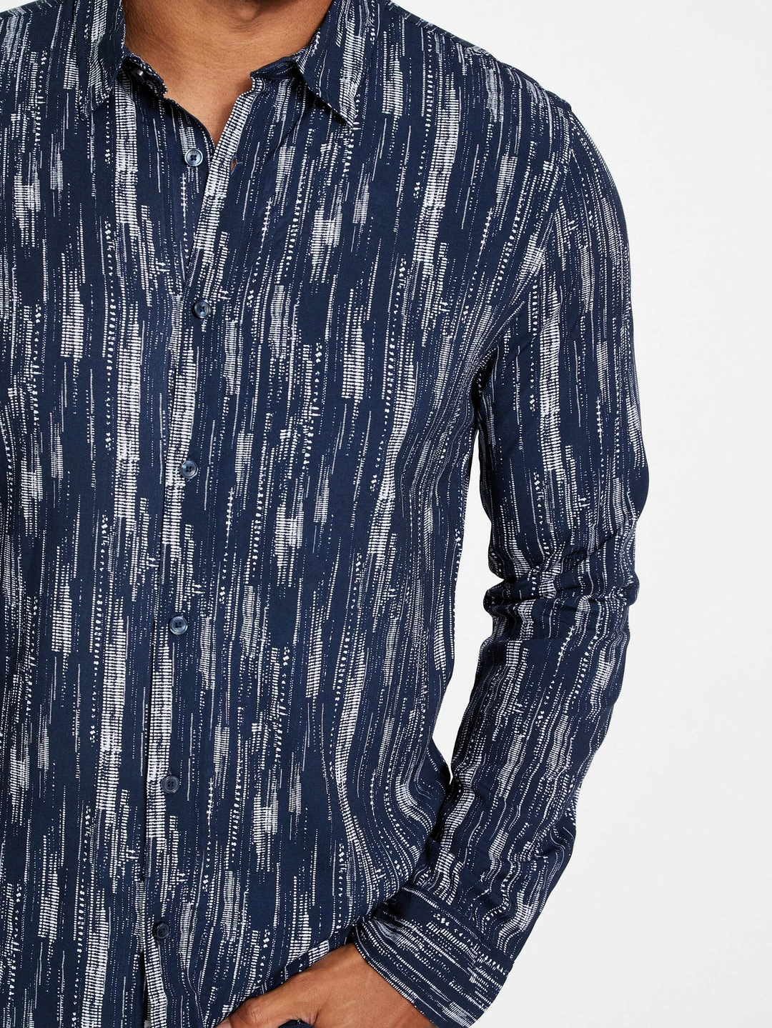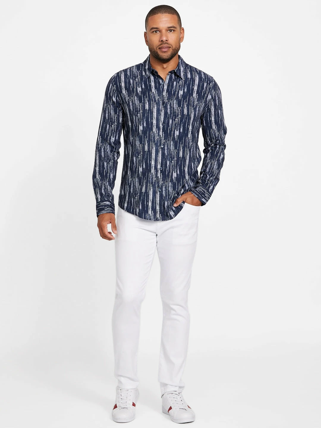 Style it up or dress it down. This long-sleeved shirt is designed with an allover botan print, collar, long sleeves and front button-up closures.