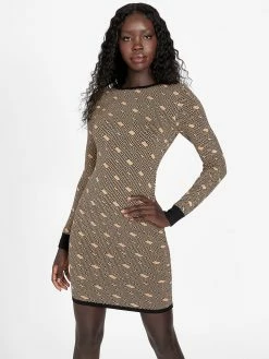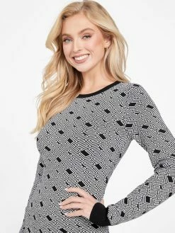 Level up with this sweater dress, featuring an allover geometric logo design, fitted silhouette and contrasting ribbed trim.