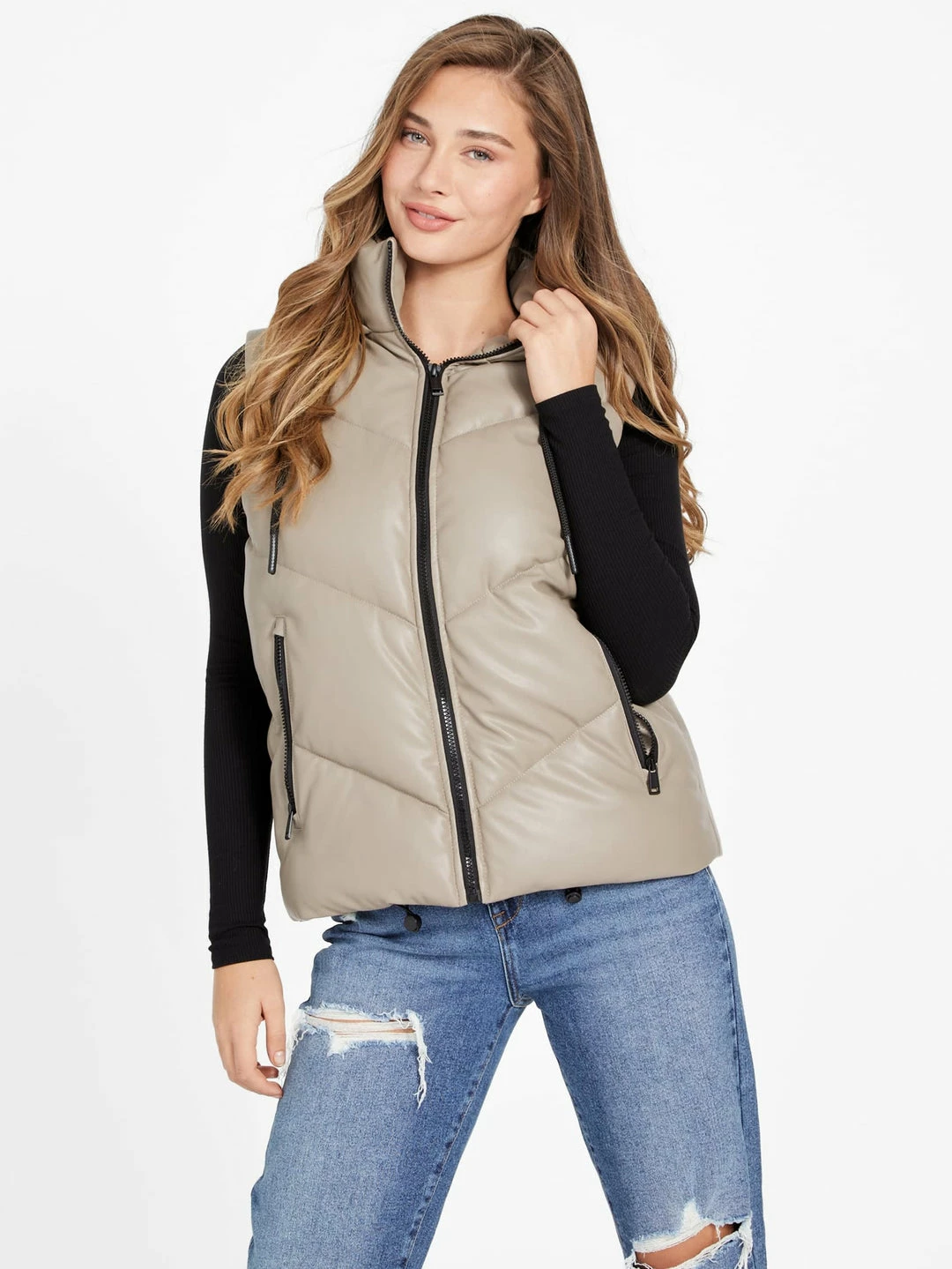 Wholesale ⭐ Guess Factory Calah Faux-Leather Puffer Vest for 👩 women 🔔