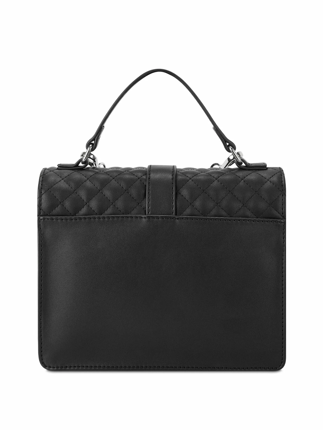 Keep your essentials secure in this crossbody bag designed in a quilted faux-leather construction featuring shiny silver-tone hardware with logo icon and a fold-over strap closure.