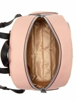 Sleek arm candy. This Saffiano faux-leather backpack features a color-block design, silver-tone logo emblem, zip-around closure, three zip pockets, a top handle and adjustable straps.