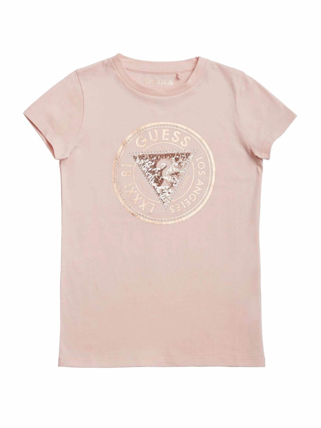 Your little one will outshine in the sandbox. This jersey tee features a sequin and rhinestone embellished triangle logo, crew neckline and short sleeves.
