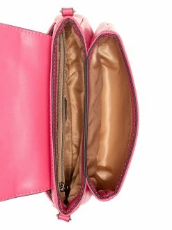 With this chic choice by your side, you’ll always look polished. A faux-leather crossbody features a fold-over flap, logo emblem, removable handle and small logo pouch.