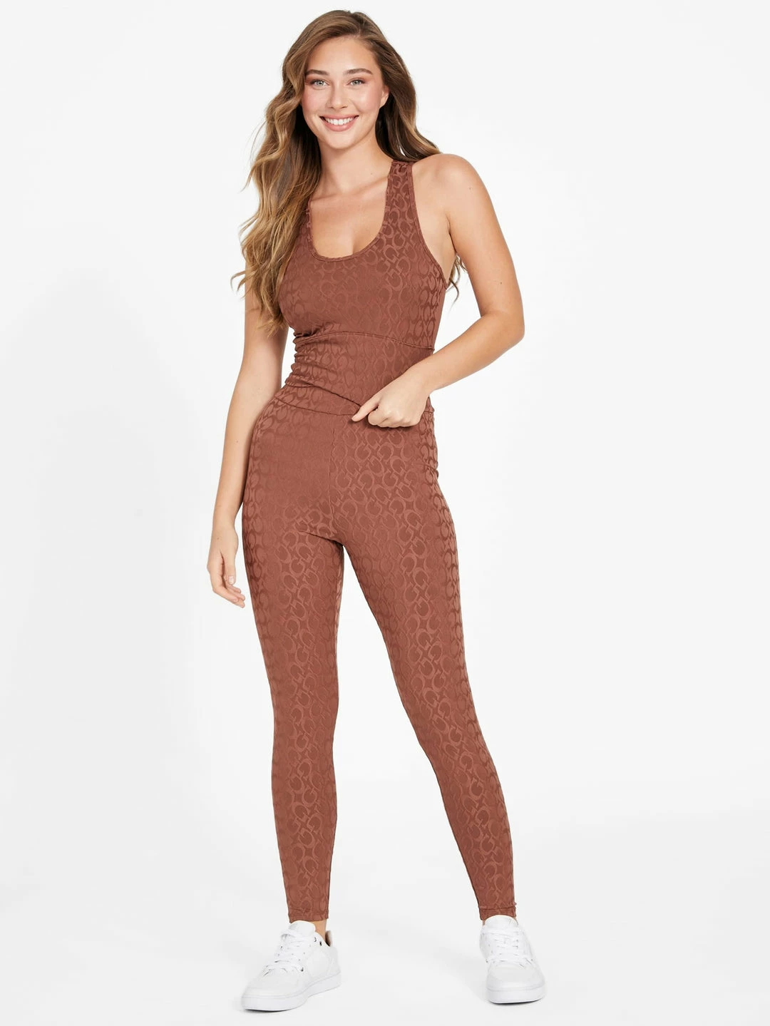 A sleek pair of microfiber leggings featuring an allover jacquard G logo and banded waist.