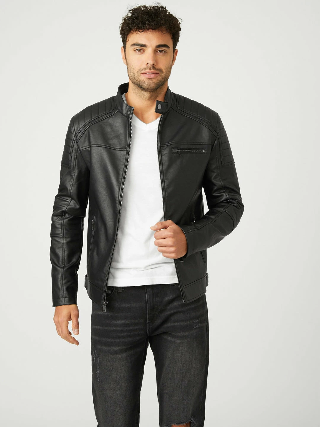 Buy 🔥 Guess Factory Daniel Faux-Leather Biker Jacket for men 🥰