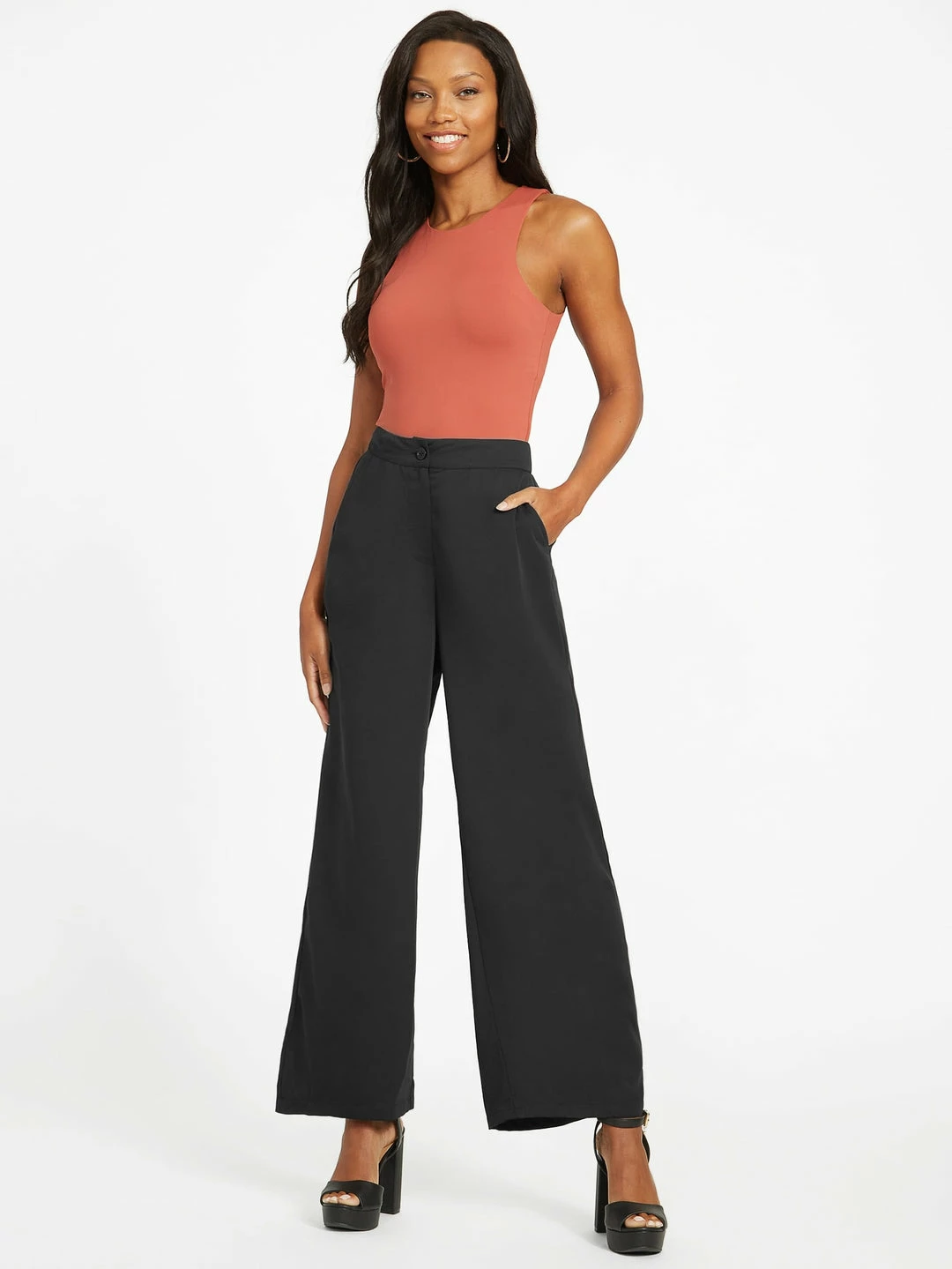 An on-trend pair of wide-leg pants featuring front pleats, slant pockets and a zip-fly closure.