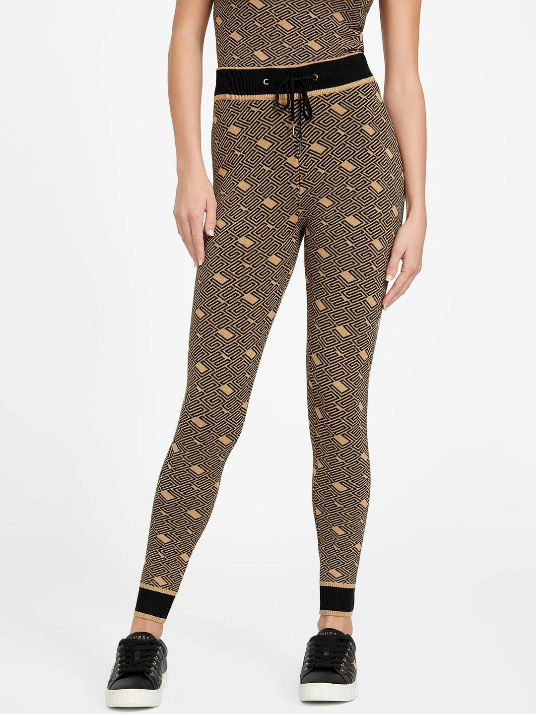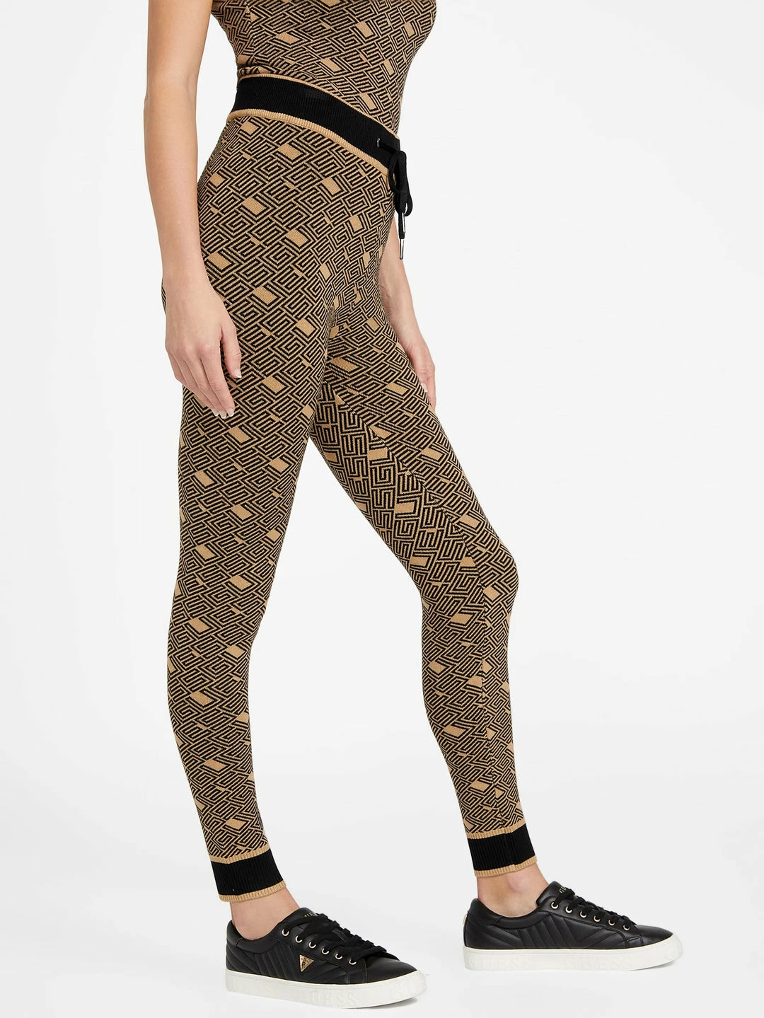 Level up in these sweater leggings, featuring an allover geometric logo design, drawstring waist, fitted silhouette and contrasting ribbed trim.