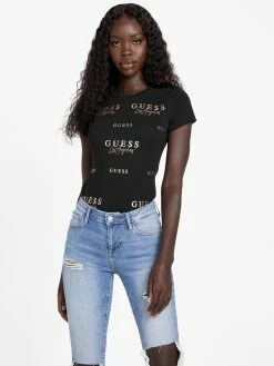 Best Pirce 😍 Guess Factory Eco Catae Rhinestone Logo Tee for 👩 women 😀