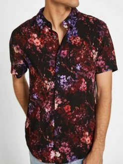 Update your look with this short-sleeve shirt featuring allover floral print, folded collar and button closures. Contains responsibly sourced forest fiber.