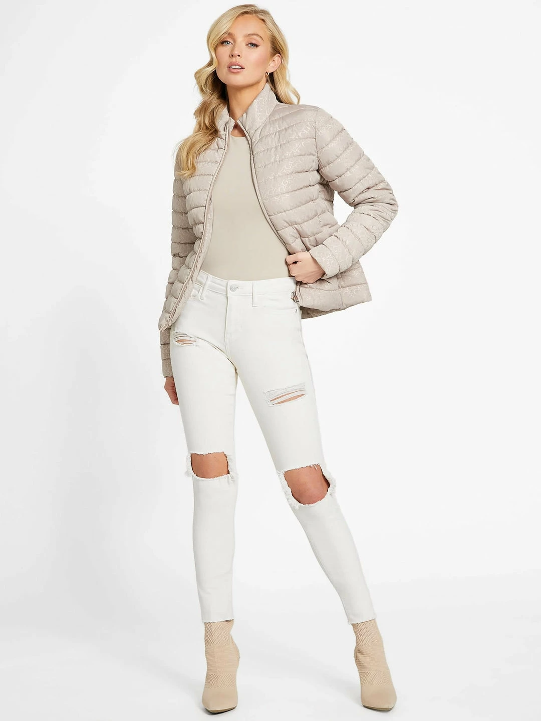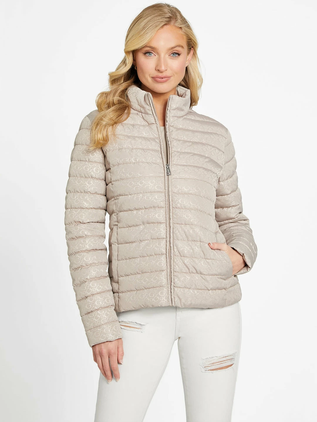 Discount ⭐ Guess Factory Eco Fleur Logo Quilted Jacket for 👩 women 🔔