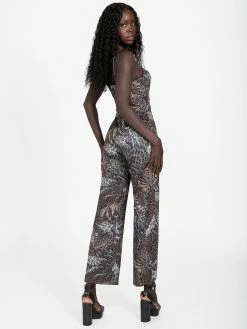 Made to stun, this jumpsuit is designed with allover animal print, cowl neck, thin straps and straight leg. Contains recycled plastic.