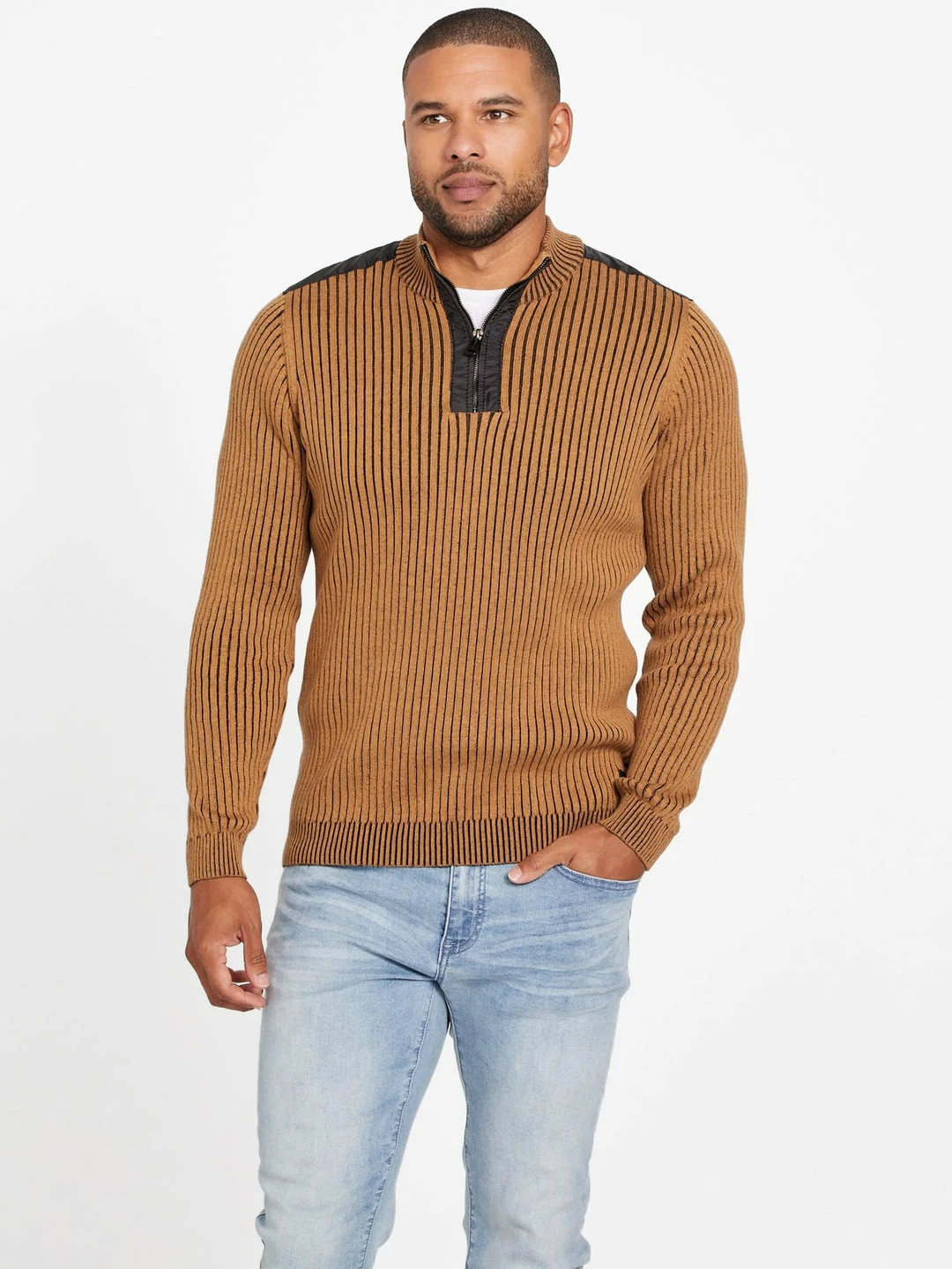 Top 10 ✔️ Guess Factory Eco Khan Mock Neck Zip Sweater for men 💯
