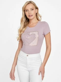 A closet staple to reach for, this easy short-sleeve tee features a crew neckline and metallic heart graphic design at front with inner logo text. Uses organic cotton fiber.