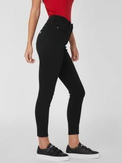 With our triangle logo patch at the back and black wash, these high-rise skinny jeans pair well with everything in your wardrobe. Contains recycled bottles.