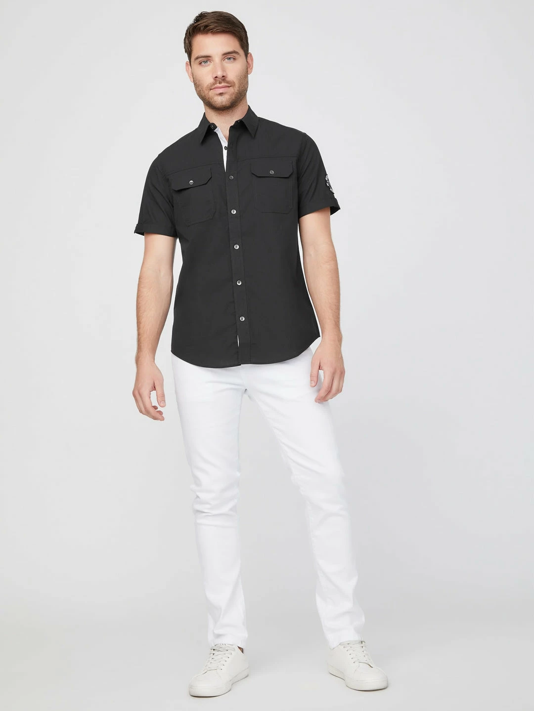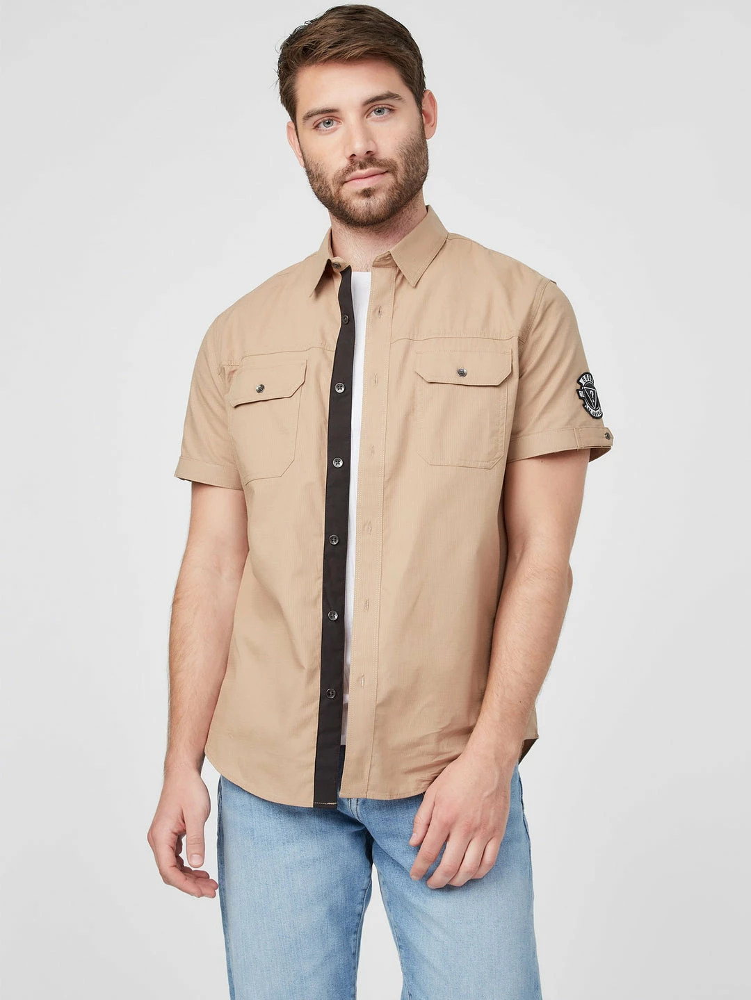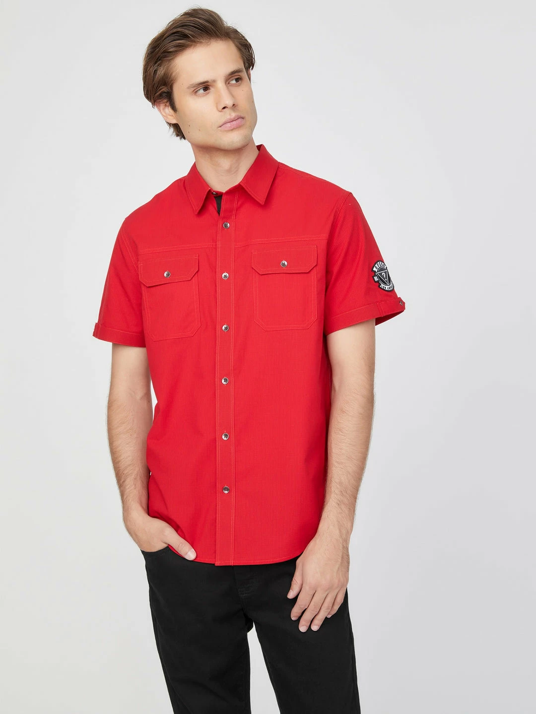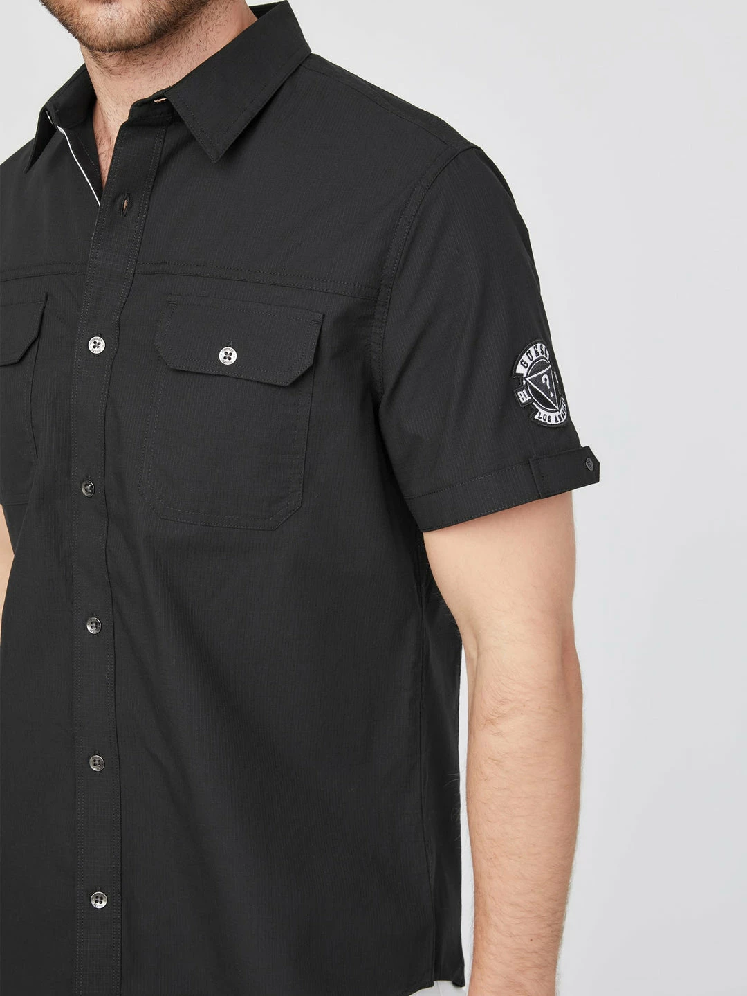 A utility favorite, this collared shirt is constructed in a woven ripstop material and features a dual chest pocket design and logo patch on the left short sleeve.
