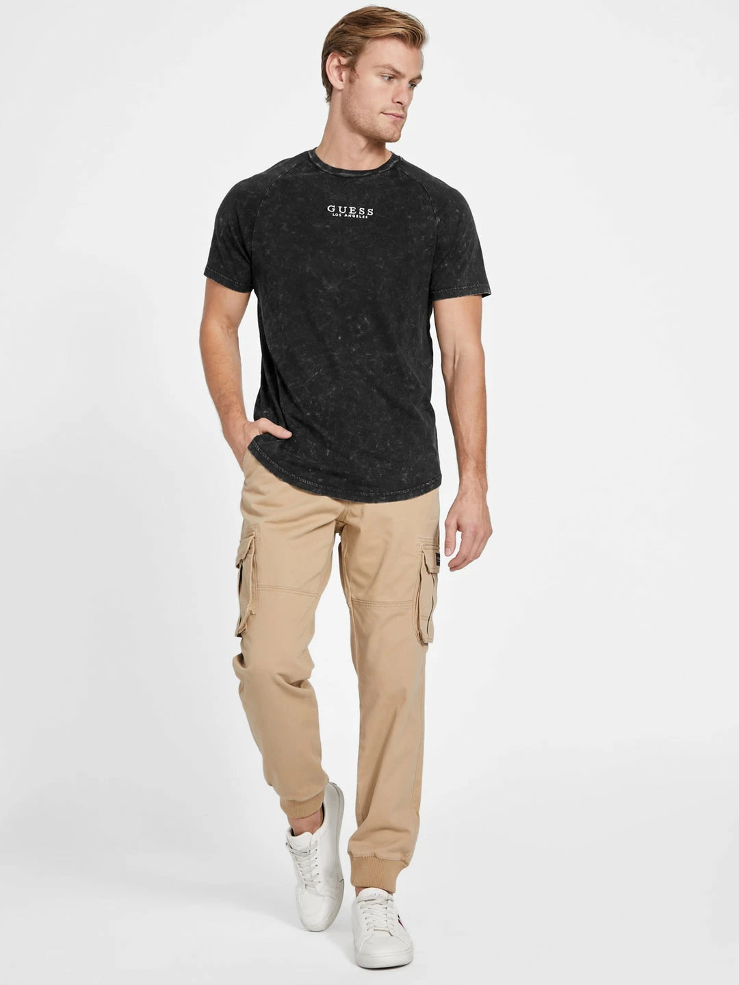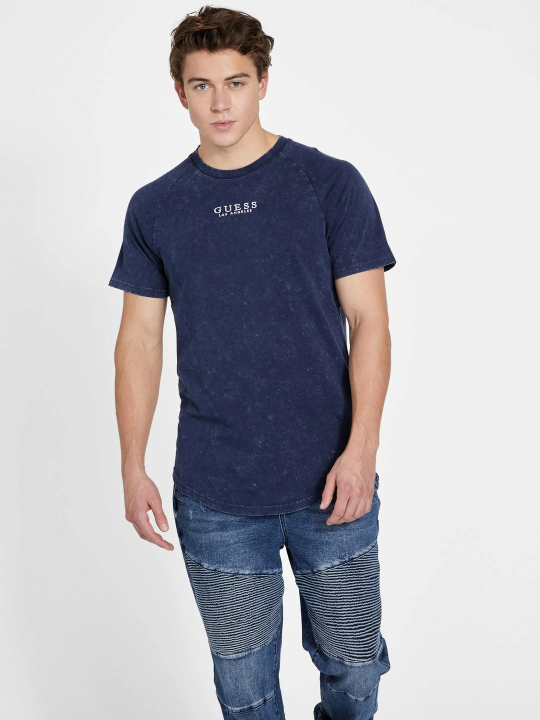 An allover mineral wash give this jersey tee a casually cool, yet elevated look. Complete with a chest logo, short raglan sleeves and crew neckline.