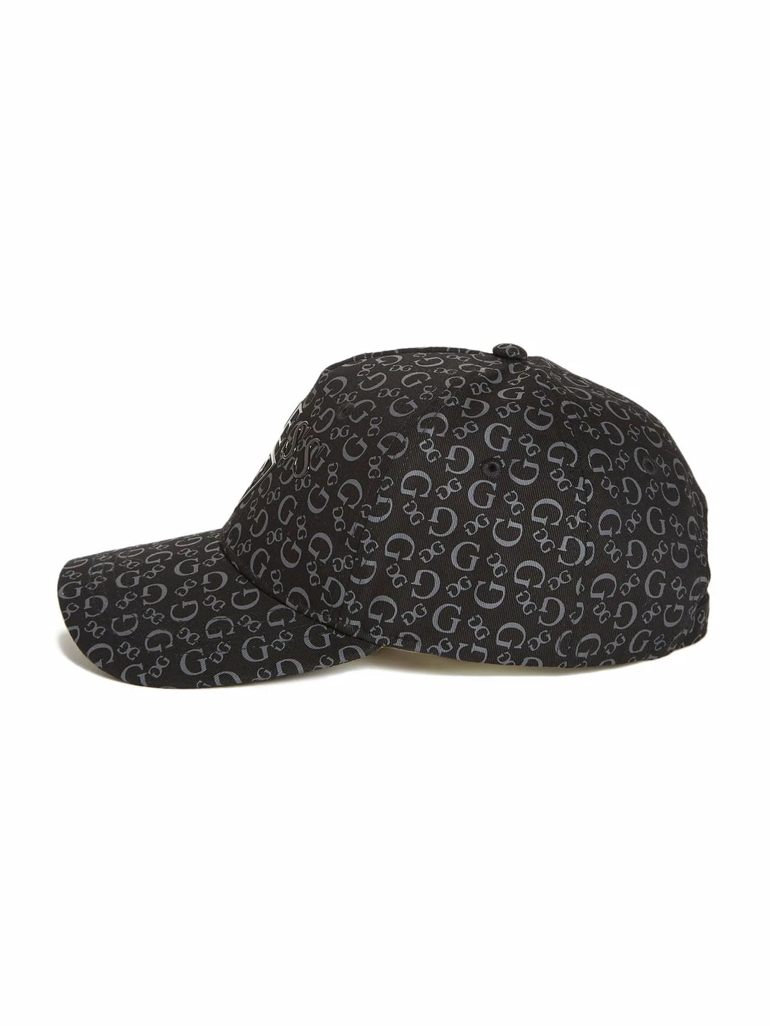 Classic baseball cap featuring an allover logo print and monochromatic rubberized gel logo text at front. Adjustable strap at back.
