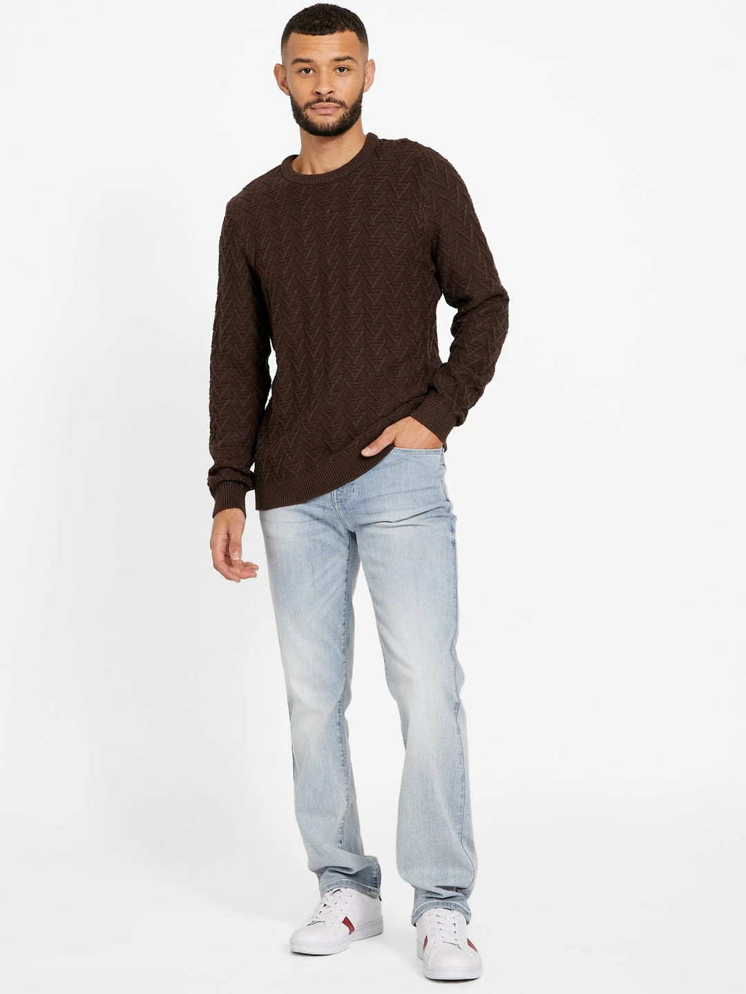 Flash Sale 🔥 Guess Factory Geometric Crewneck Sweater for men 😉