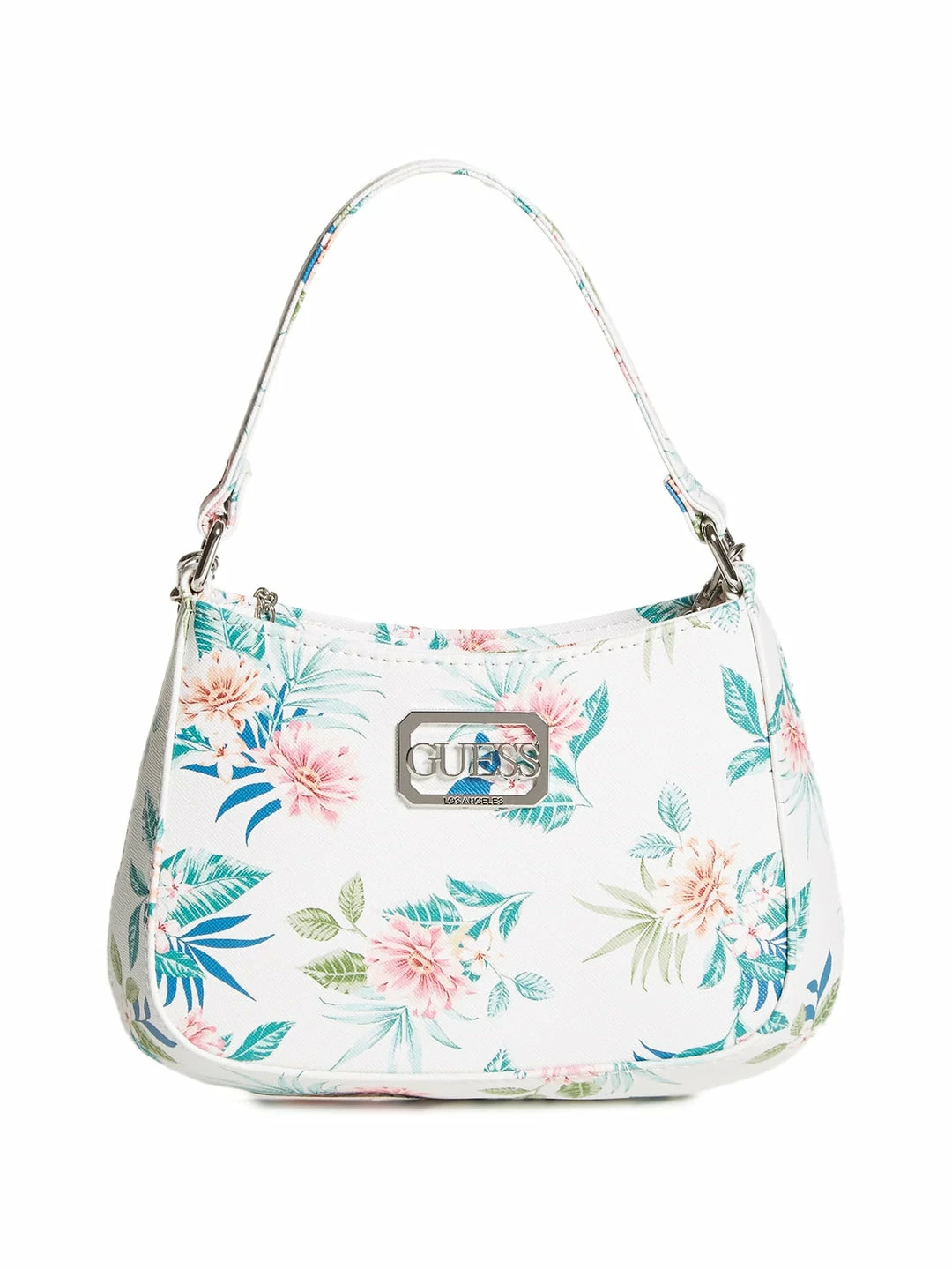 End your look on a cute note with this compact hobo bag designed in a rounded structure with logo emblem detail. Comes with detachable crossbody chain.