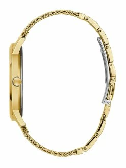 Add a modern touch to your look with this gold-tone analog watch, featuring a mesh bracelet, logo detail and matching case.