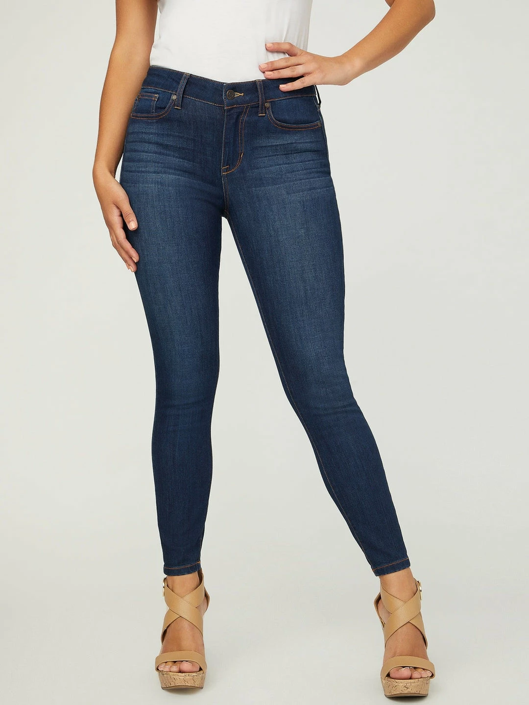Styled in a timeless mid-rise silhouette, these essential skinny jeans are made in a stretch denim fabrication for ultimate body-skimming shaping.