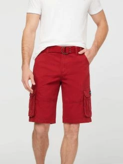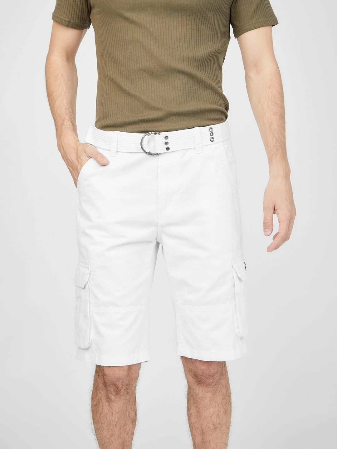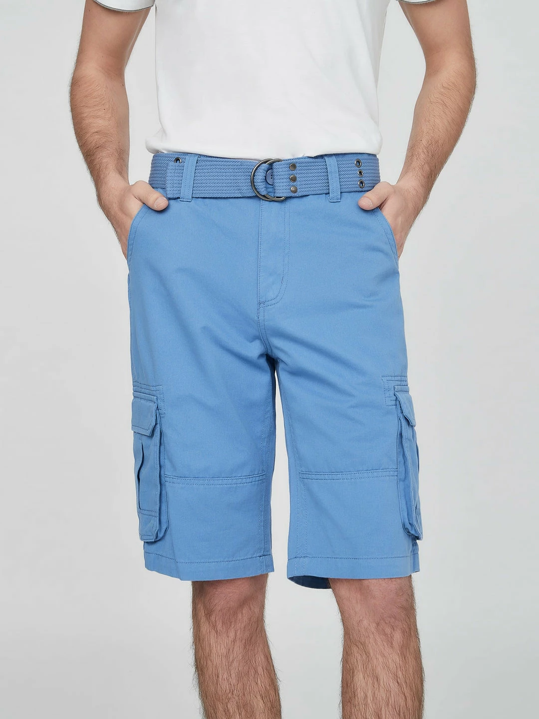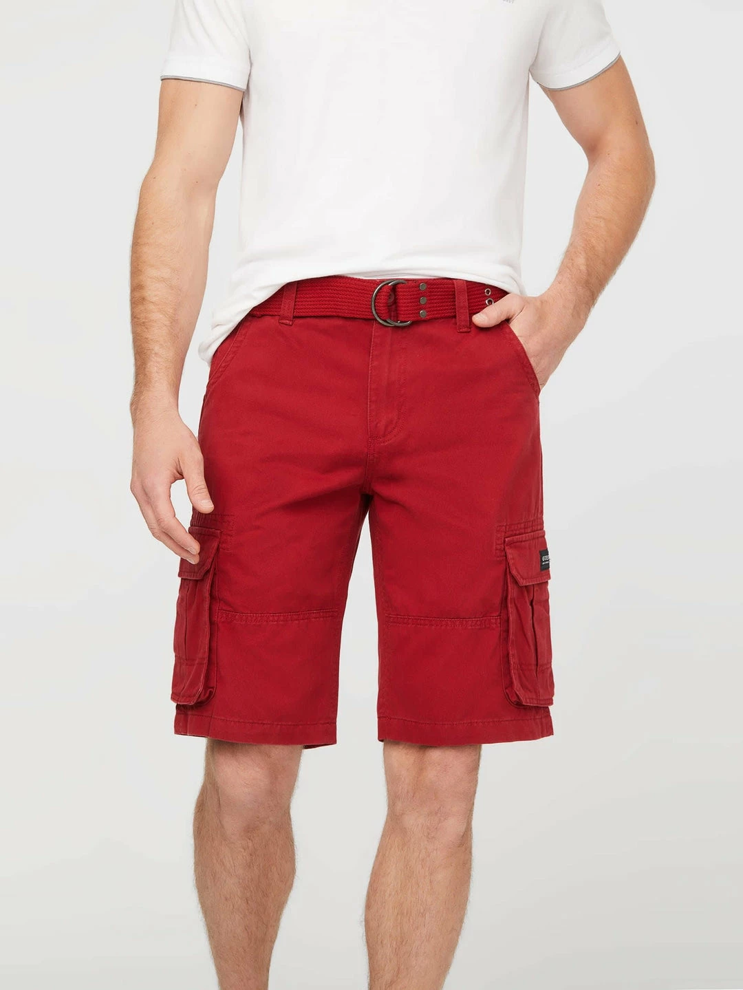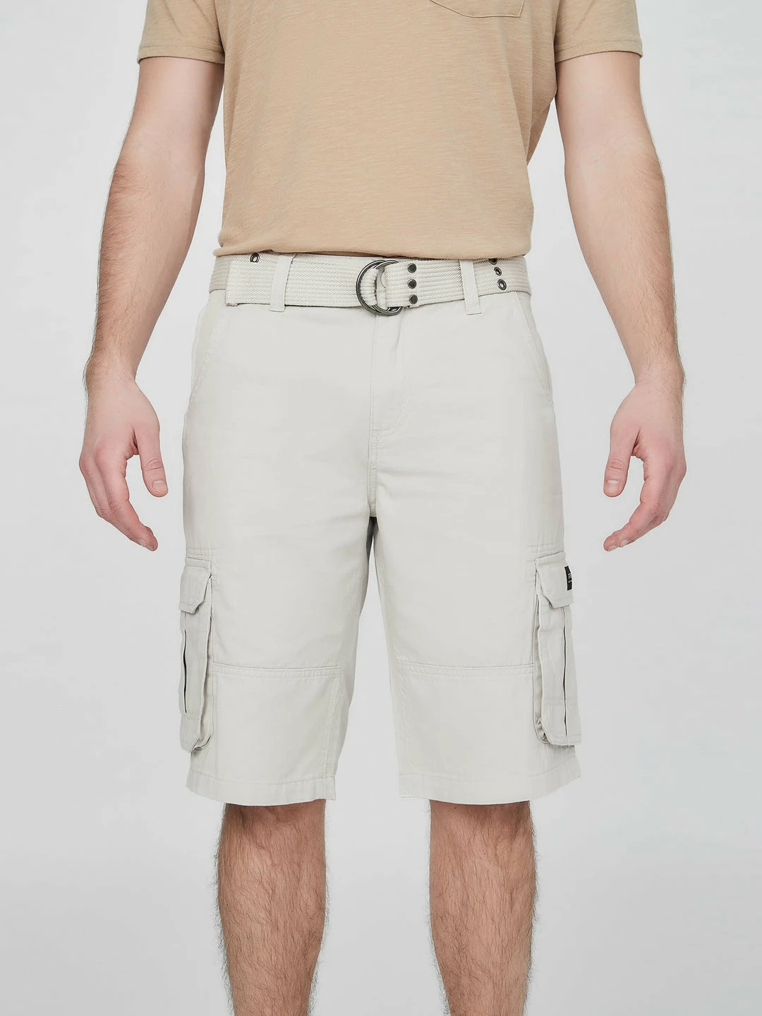 Made for off-duty days, these cargo shorts hit below the knee for a casual look and feature a seven-pocket construction including a zip coin pocket in the right front slip pocket. Comes with removable canvas belt with D-ring security.
