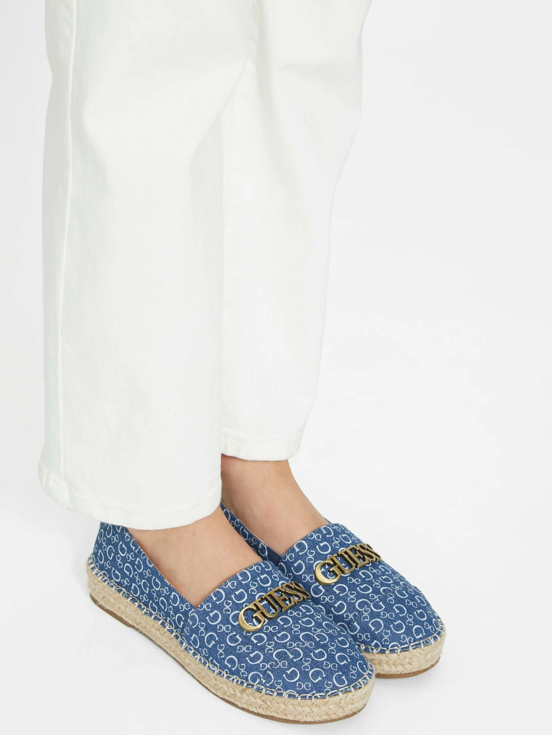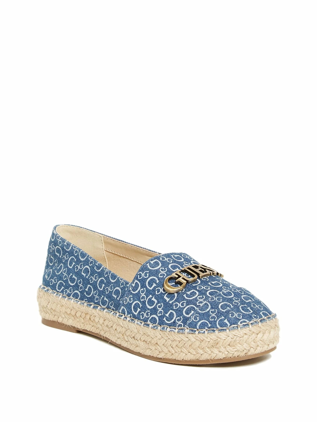 A pair of cute and casual slip-on shoes featuring a logo emblem, round toe and espadrille sole. Faux-leather and logo-printed options.