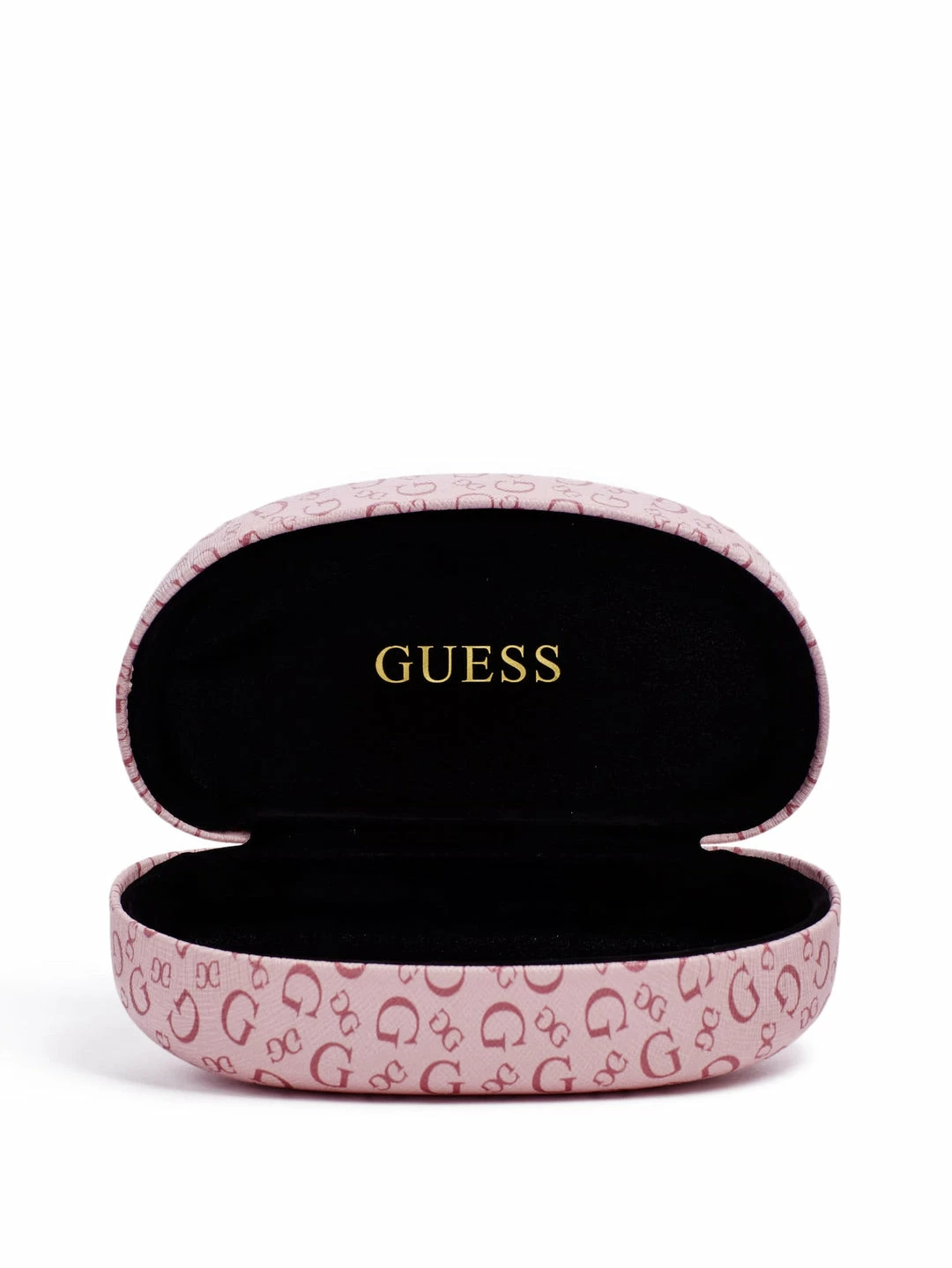 This hard-shell logo print eyewear case is the ultimate way to protect your shades and show off your GUESS style. Snap-button closure.
