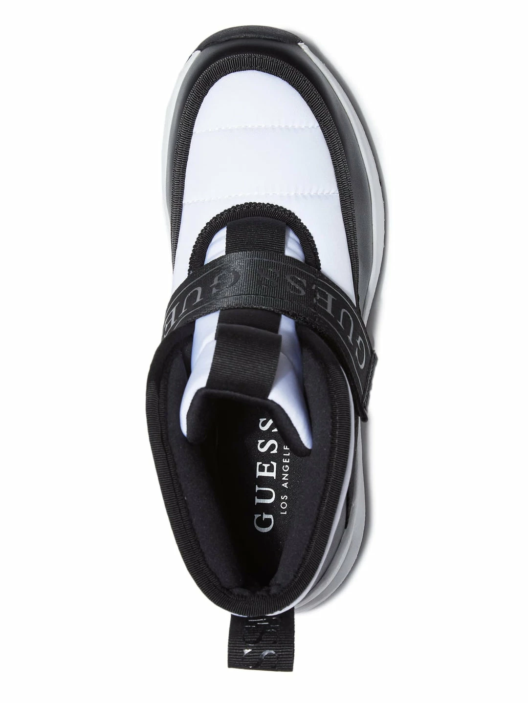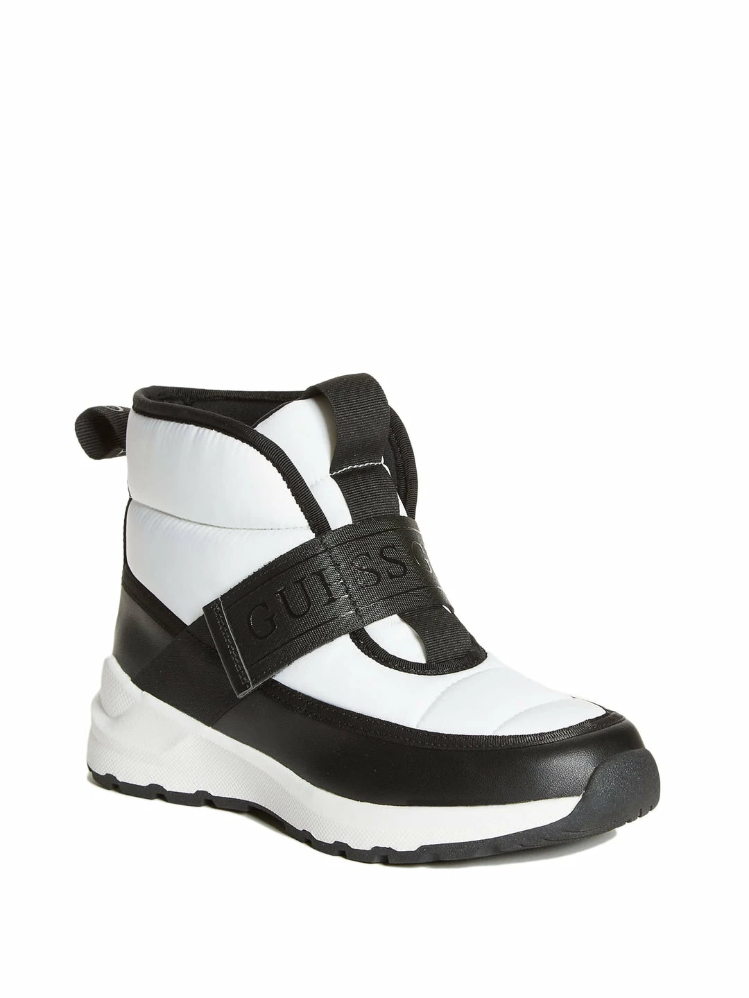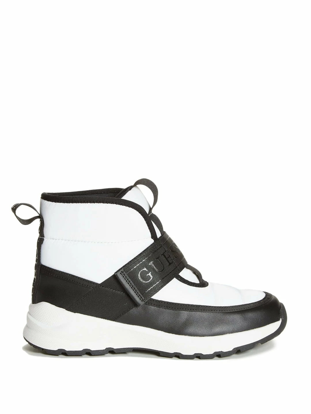 Ideal for your everyday, these cold weather-ready sneaker boots feature a quilted nylon exterior with logo-tape Velcro band across the vamp. Rubber sole.