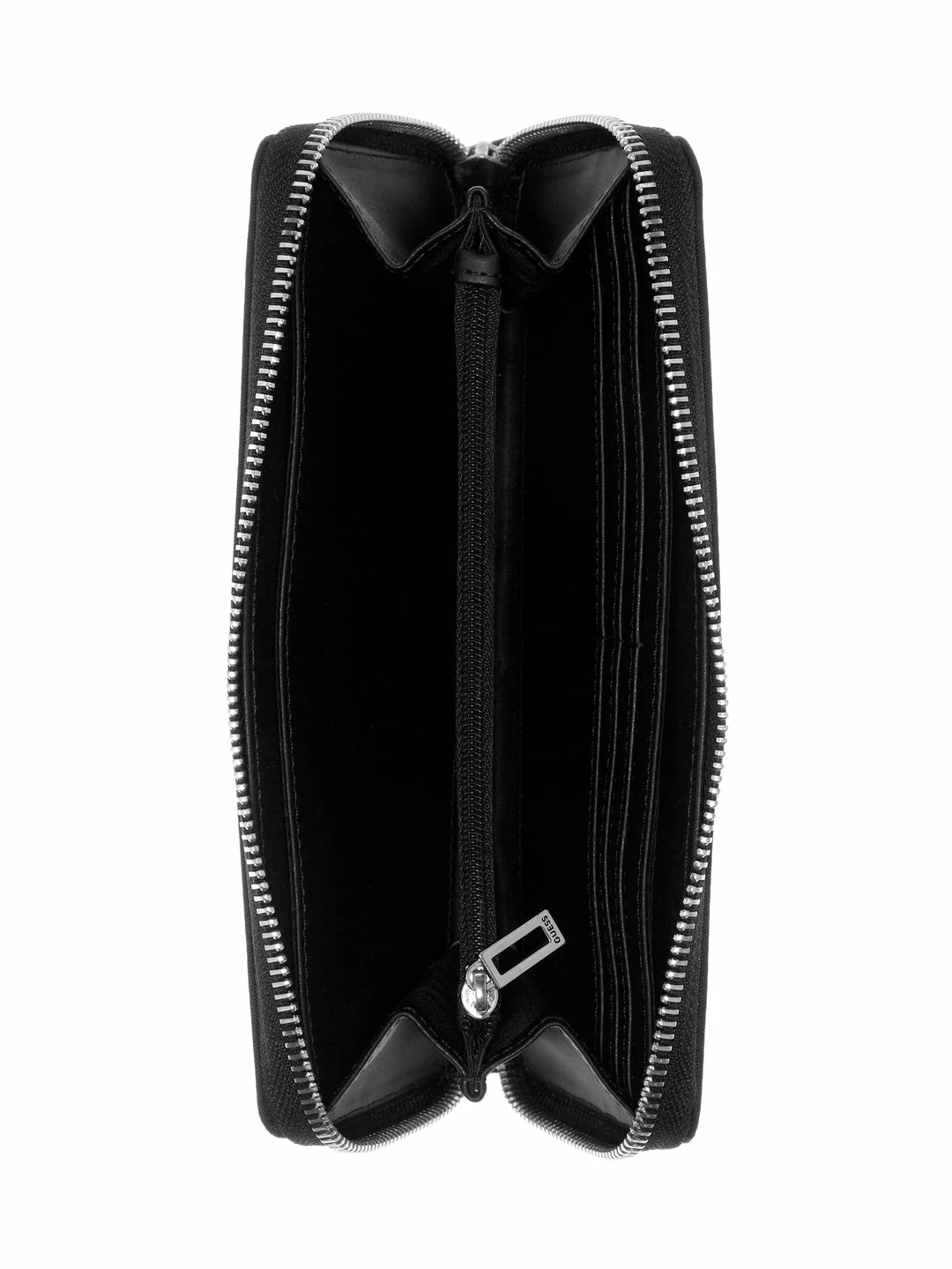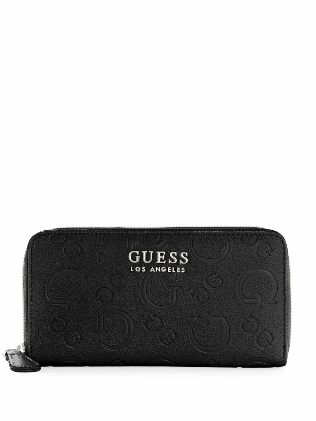 Sleek and essential, this medium wallet is a must-have for everyday. Featuring faux-leather with allover debossed logo, silver-tone hardware, internal accordion organization and zip-around closure.