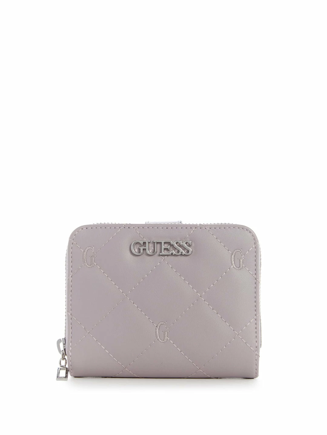 Essential for everyday elegance. This foldover zip wallet is designed with a quilted faux-leather fabrication detailed with embroidered logo initials, front logo plaque, card slot compartment and a zip around pouch.