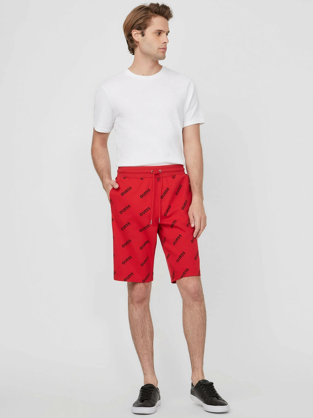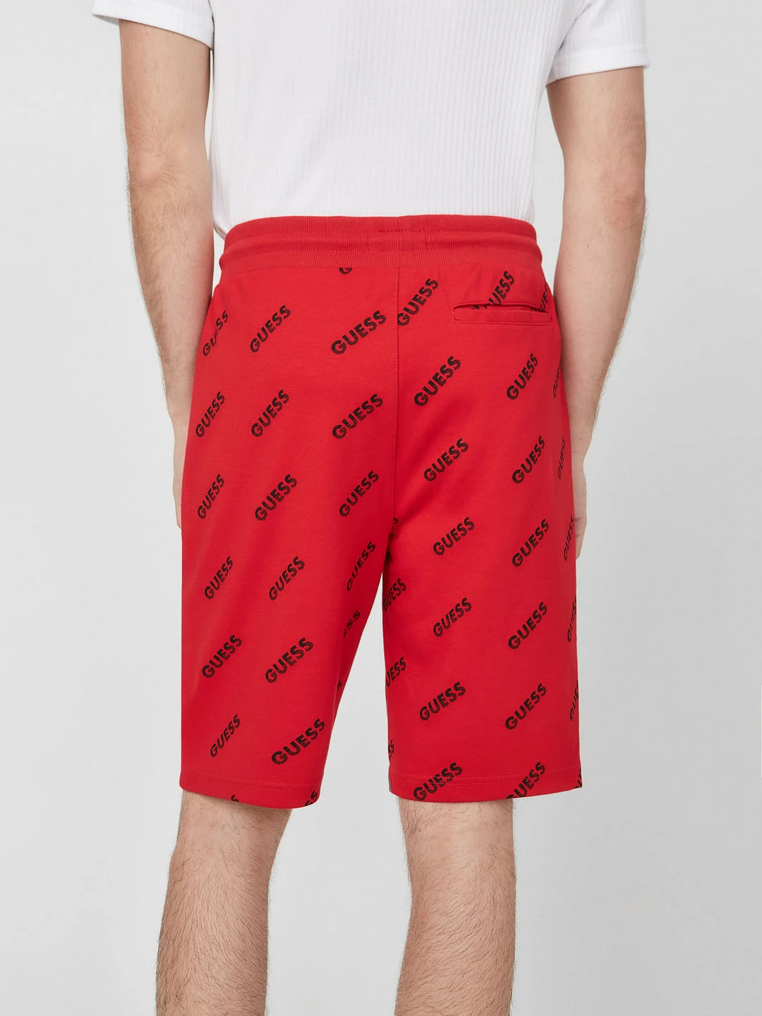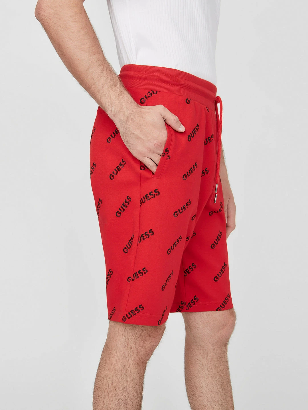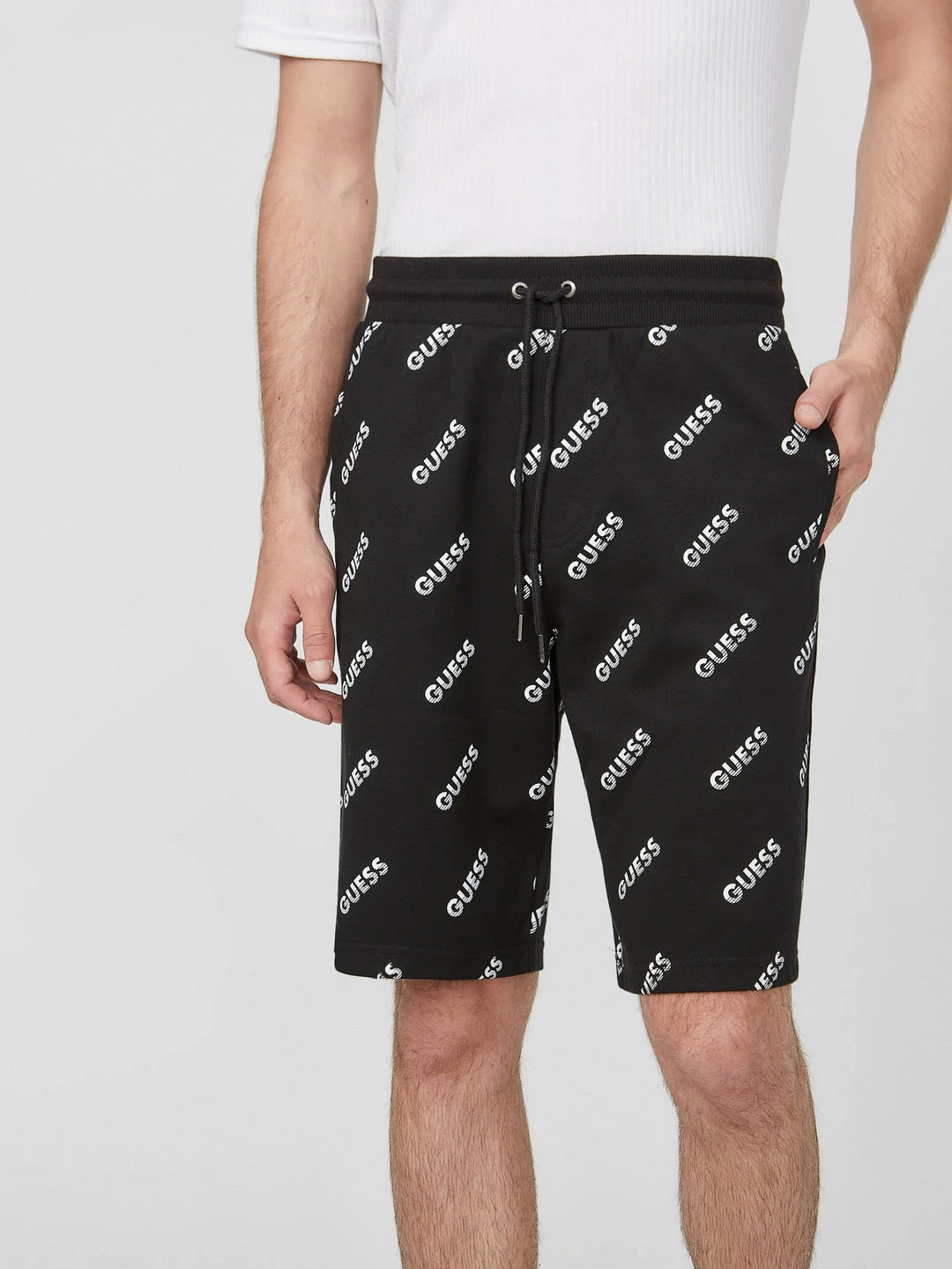 Take it easy in these updated shorts constructed in a soft cotton blend featuring an allover logo print, three-pocket construction and elastic waist with drawstrings.