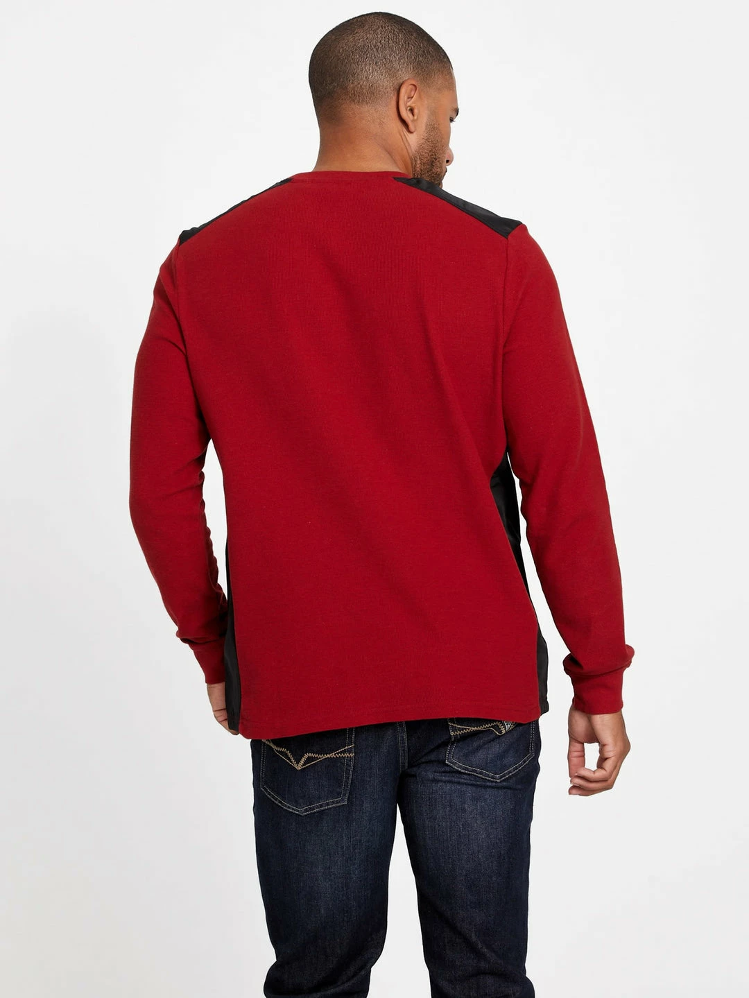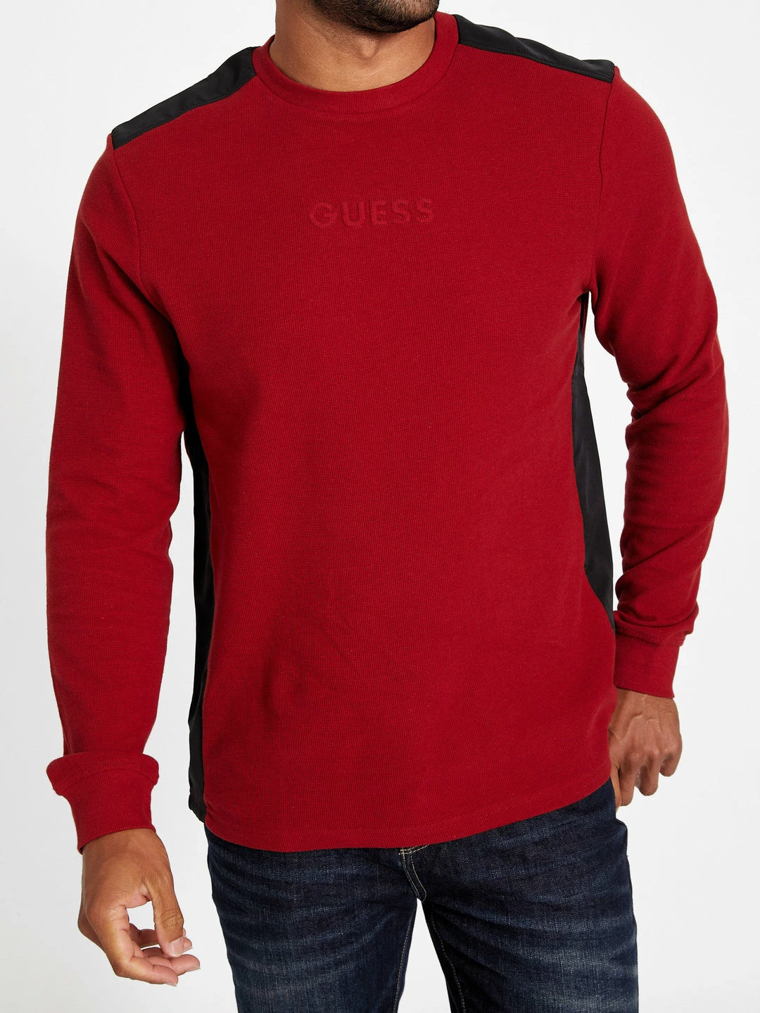 A waffle-knit long-sleeve tee featuring a color-block design, front logo and crew neckline.