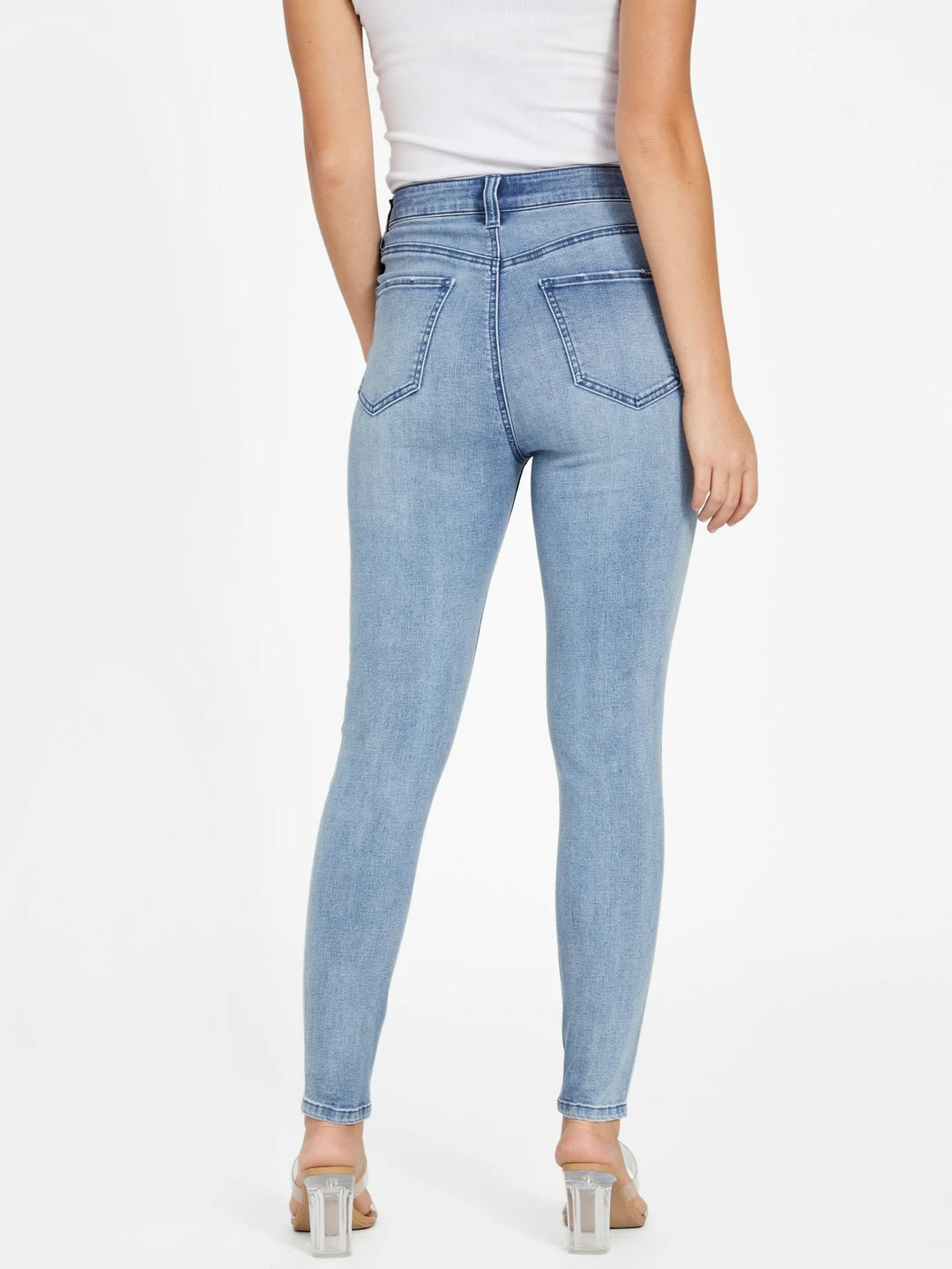 Mix in some glamour with these ultra-flattering skinny jeans featuring rhinestone trim detail on legs and super high-rise fit.