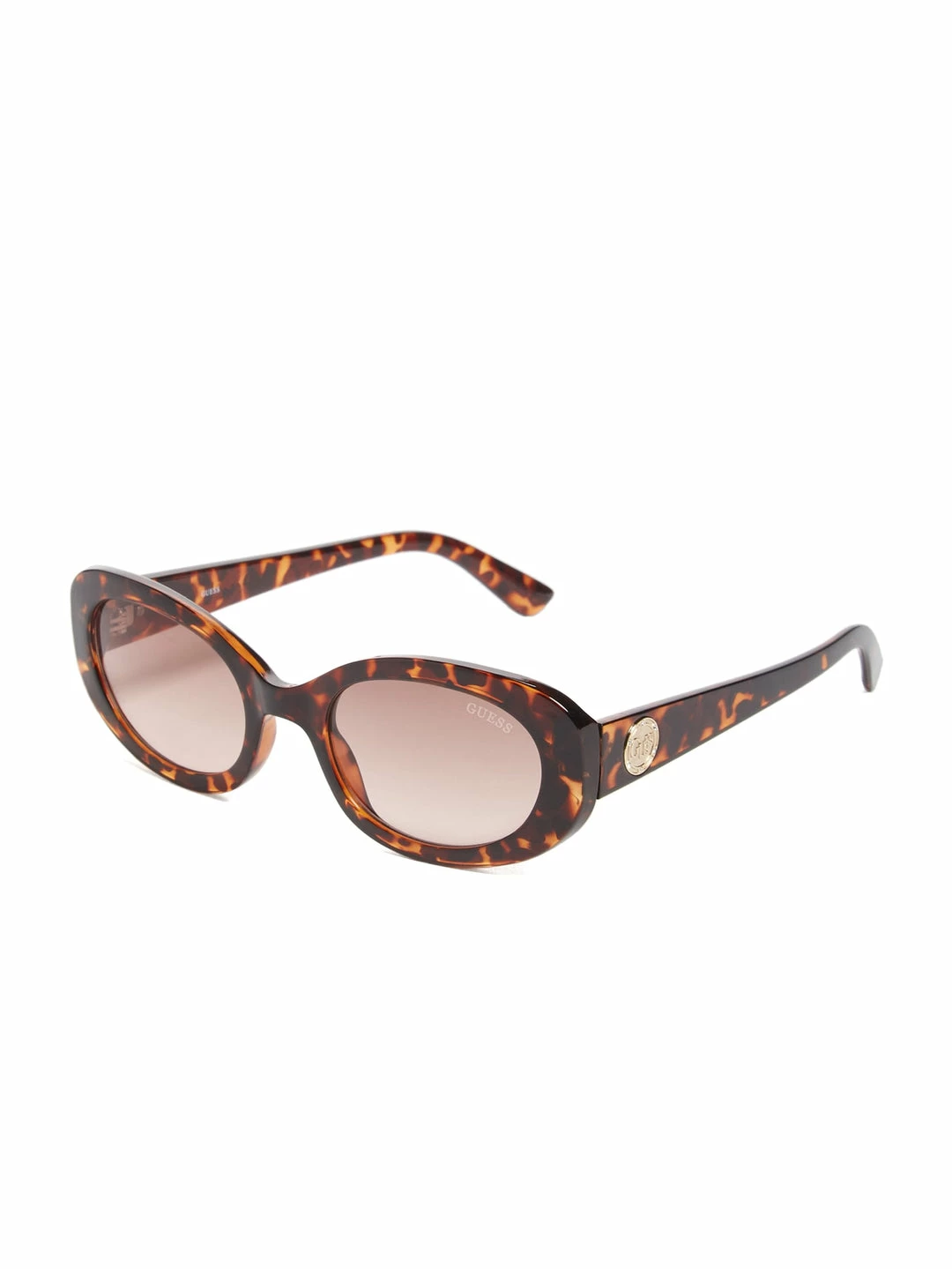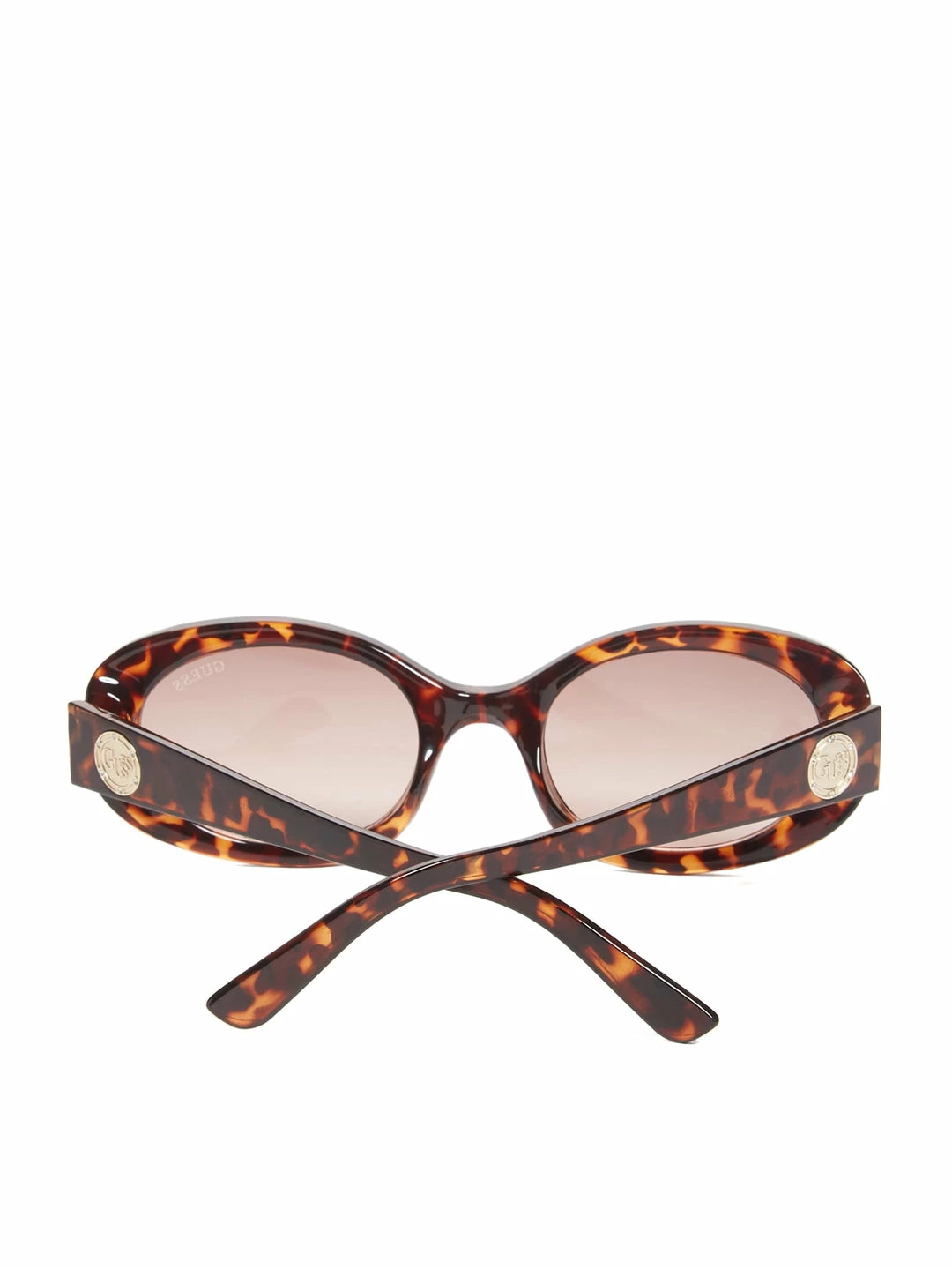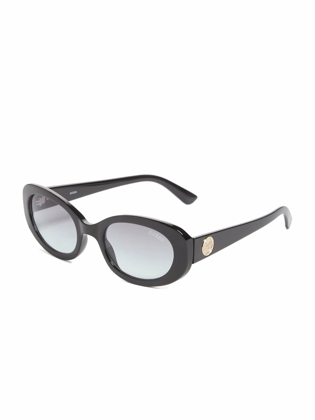 End your look on a chic note with these oval-shaped sunglasses featuring plastic frames and tinted lenses. Logo coin details at the temples.