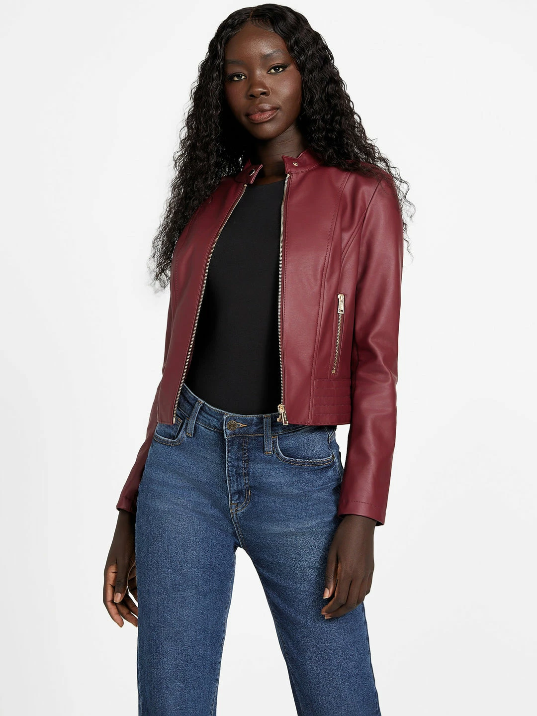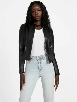 Outlet 🎁 Guess Factory Popal Faux-Leather Jacket for 👩 women 😀