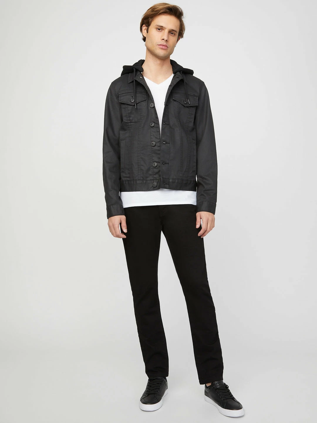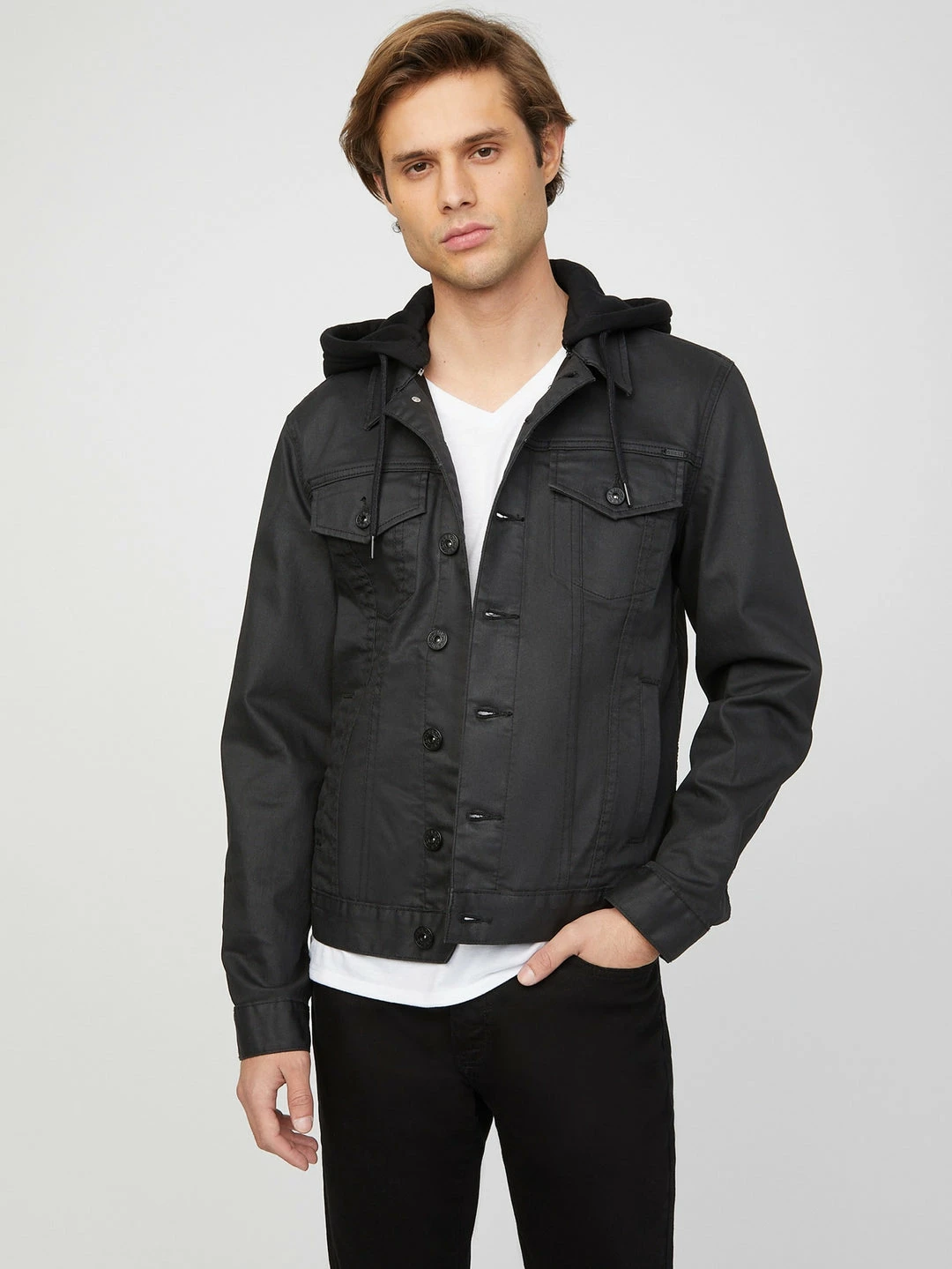 Coated denim, removable hood and standout style make this everyday jacket one that demands attention.