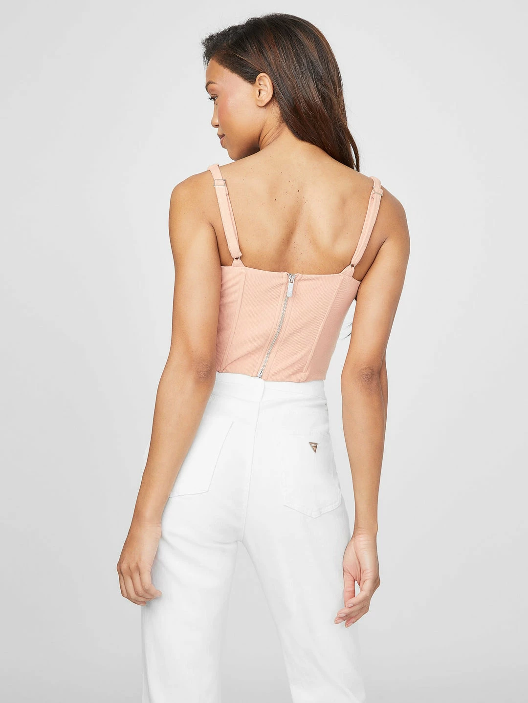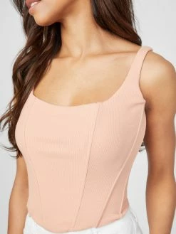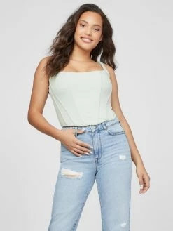 Showcase your style in this cute top featuring a scoop neckline and structured corset-inspired piecing for an elevated fit experience. Tank straps and back zip closure.