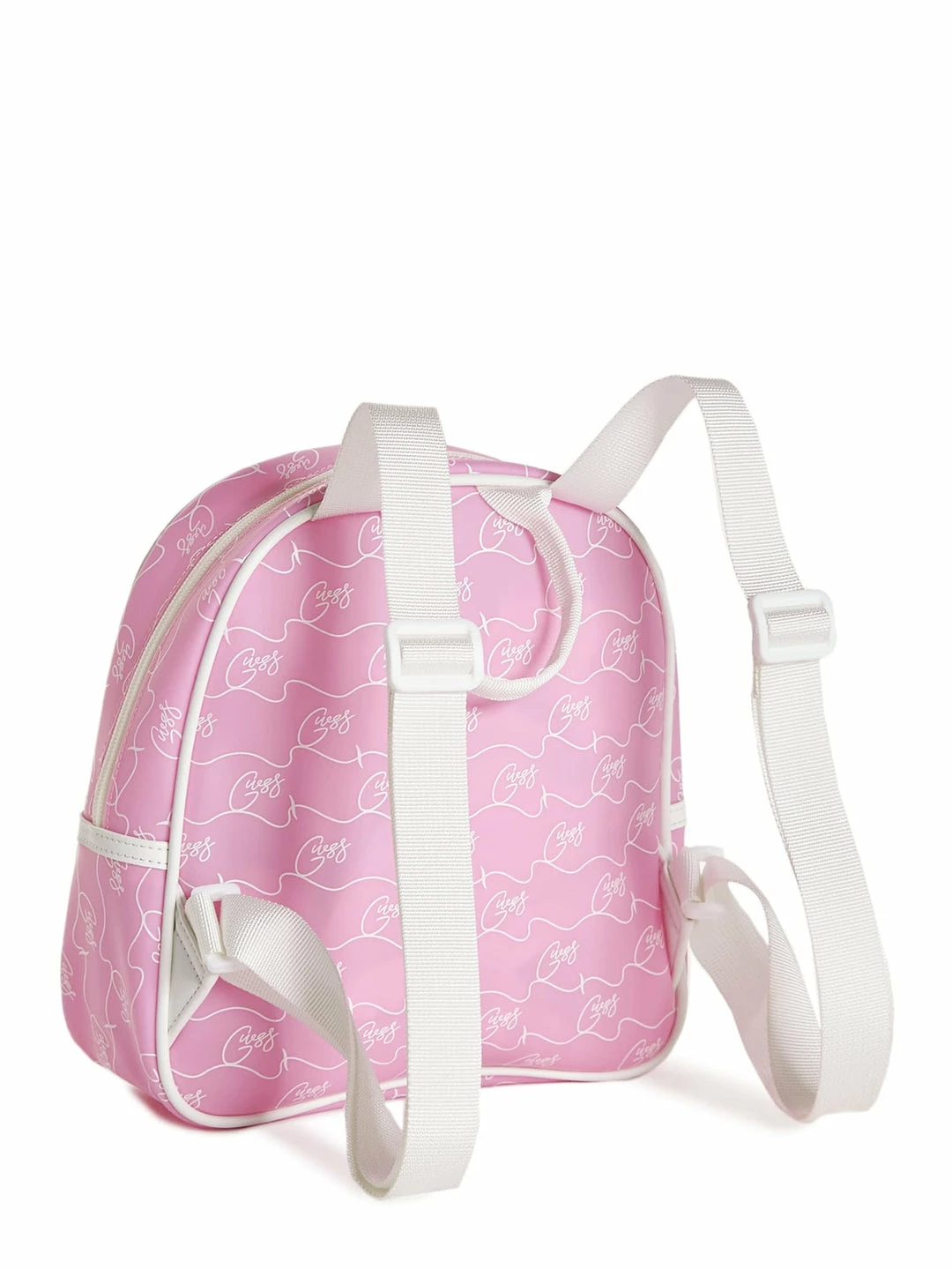 Perfect for on-the-go, this kids’ backpack is designed in a jelly fabrication featuring an allover script logo print. Exterior zip pocket and logo patch at front. Zip closure and adjustable straps.