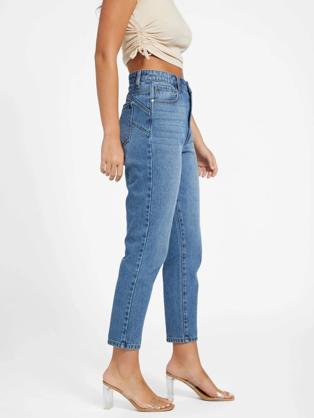 An everyday classic style. These Mom jeans are made from body-sculpting stretch denim and feature a cropped fit, stylized seams at the side and an ultra high-rise.