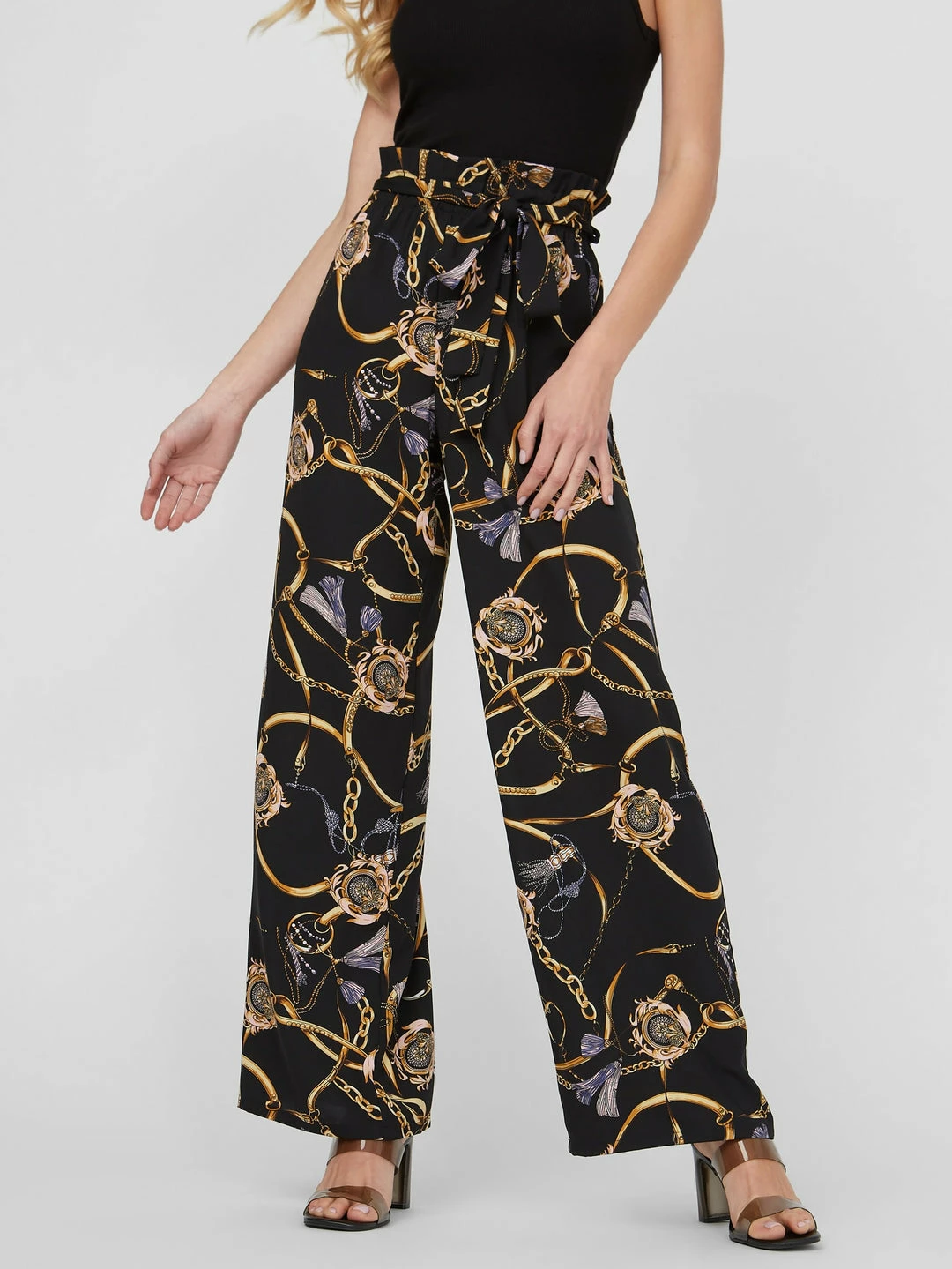 Featuring an allover baroque-inspired print, these wide-leg pants are designed in a high-rise paperbag style with self-tie belt.