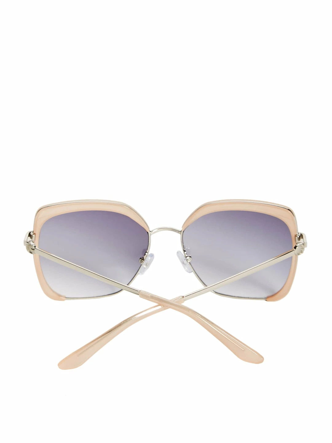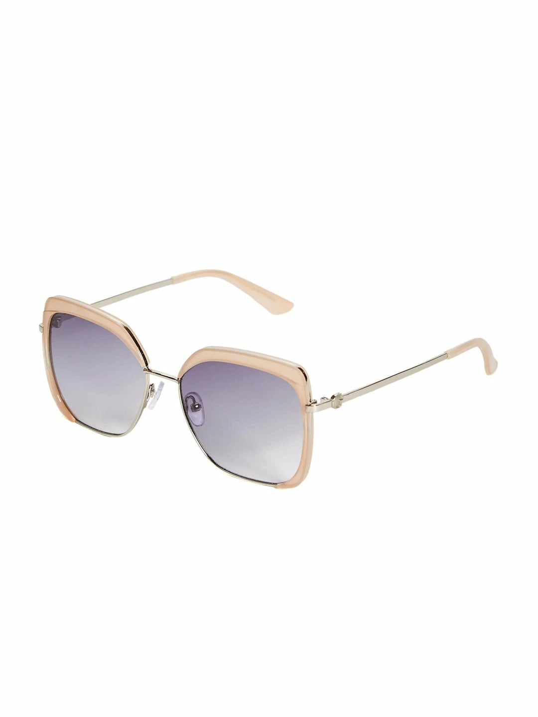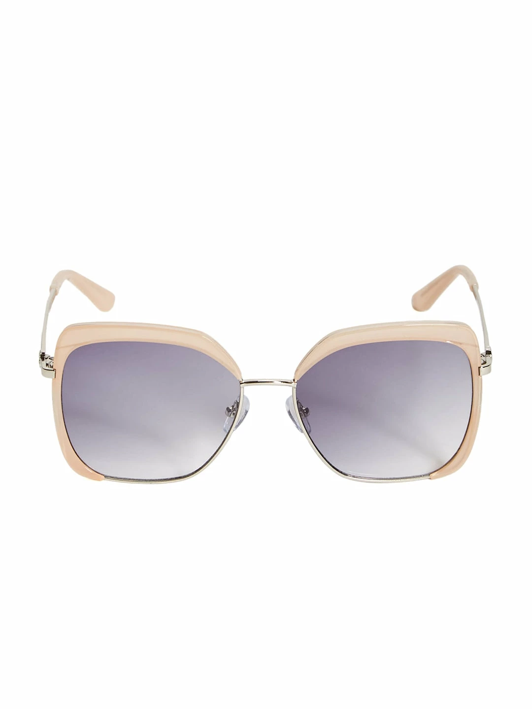 This pair of square sunglasses feature a combination frame with high-polish metal, ombre lenses and an adjustable nose piece.