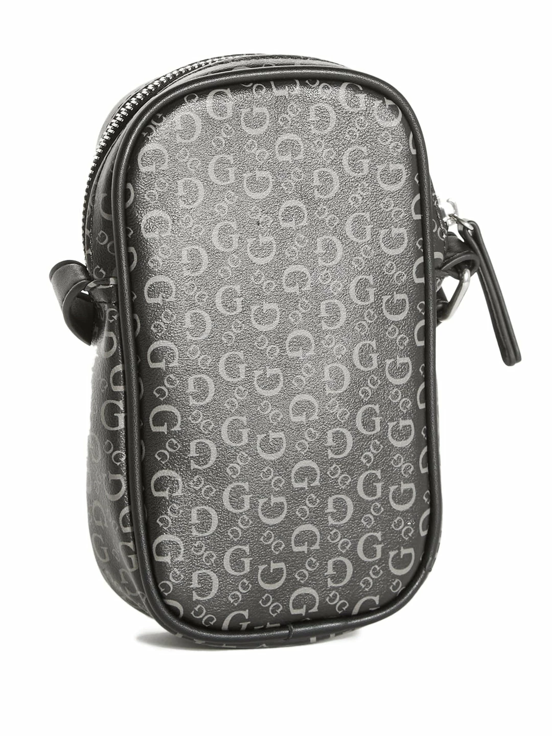 Take just what you need in this faux-leather crossbody bag featuring an allover logo print and contrasting striped design down the middle. Zip closure.