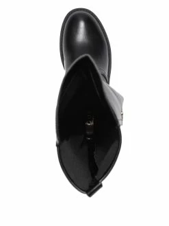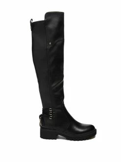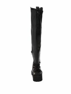 Make the right moves and wear these tall boots for your next escapade. Featuring a faux-leather construction, gold-toned accents, lacing at the back and thick soles.