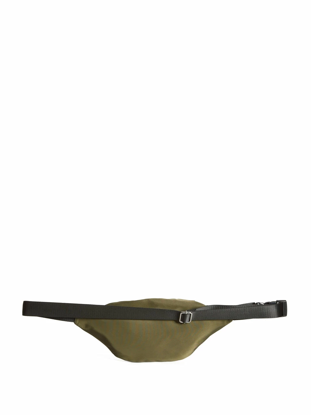 Ideal for on-the-go, this fanny pack features a main zip compartment and exterior pocket with logo text and diagonal zip closure. Adjustable webbed strap.