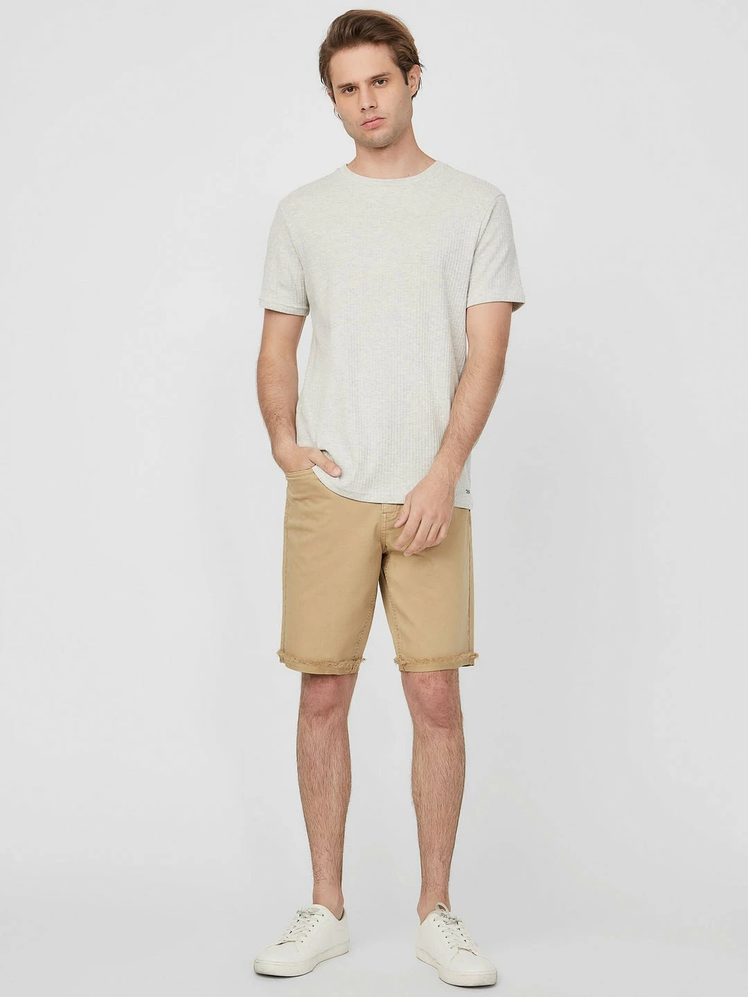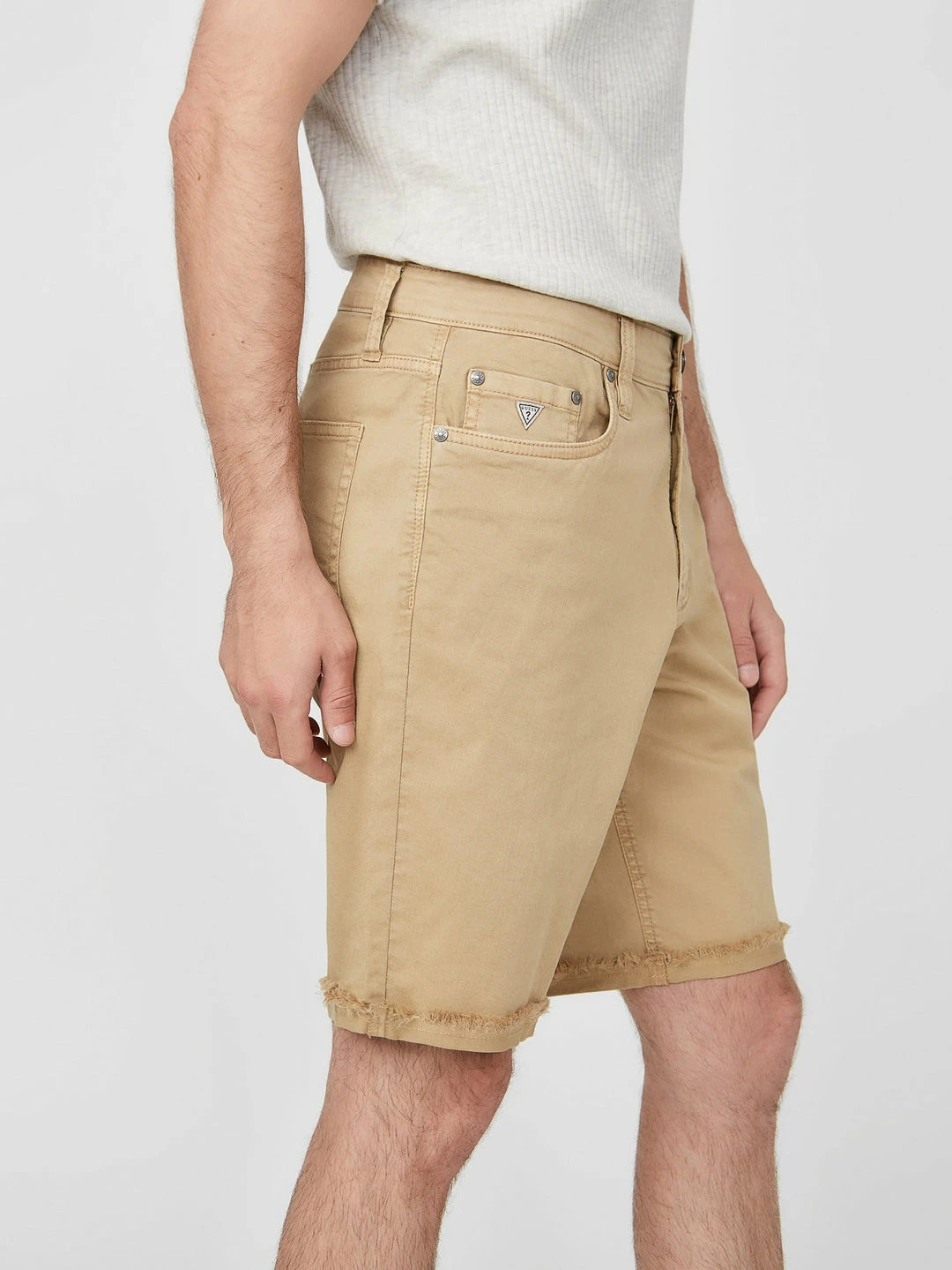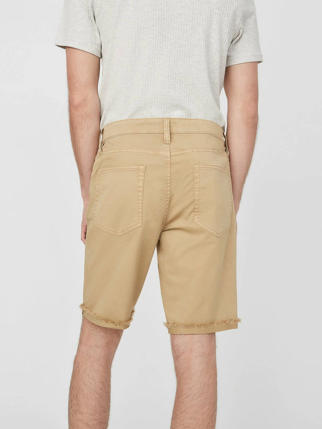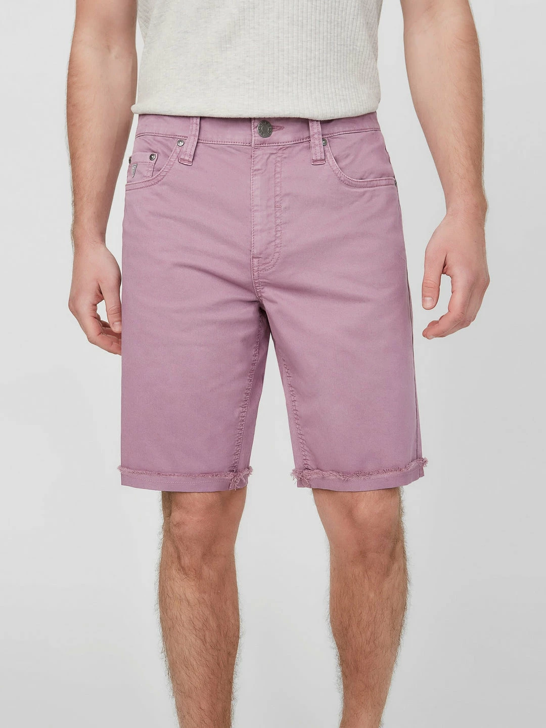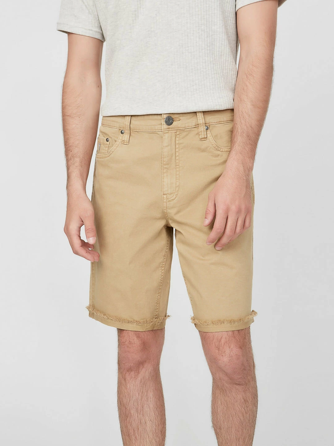 A classic style with a color update, these woven mid-rise shorts feature an at-the-knee fit, five-pocket construction and rolled cuffs with raw edges.