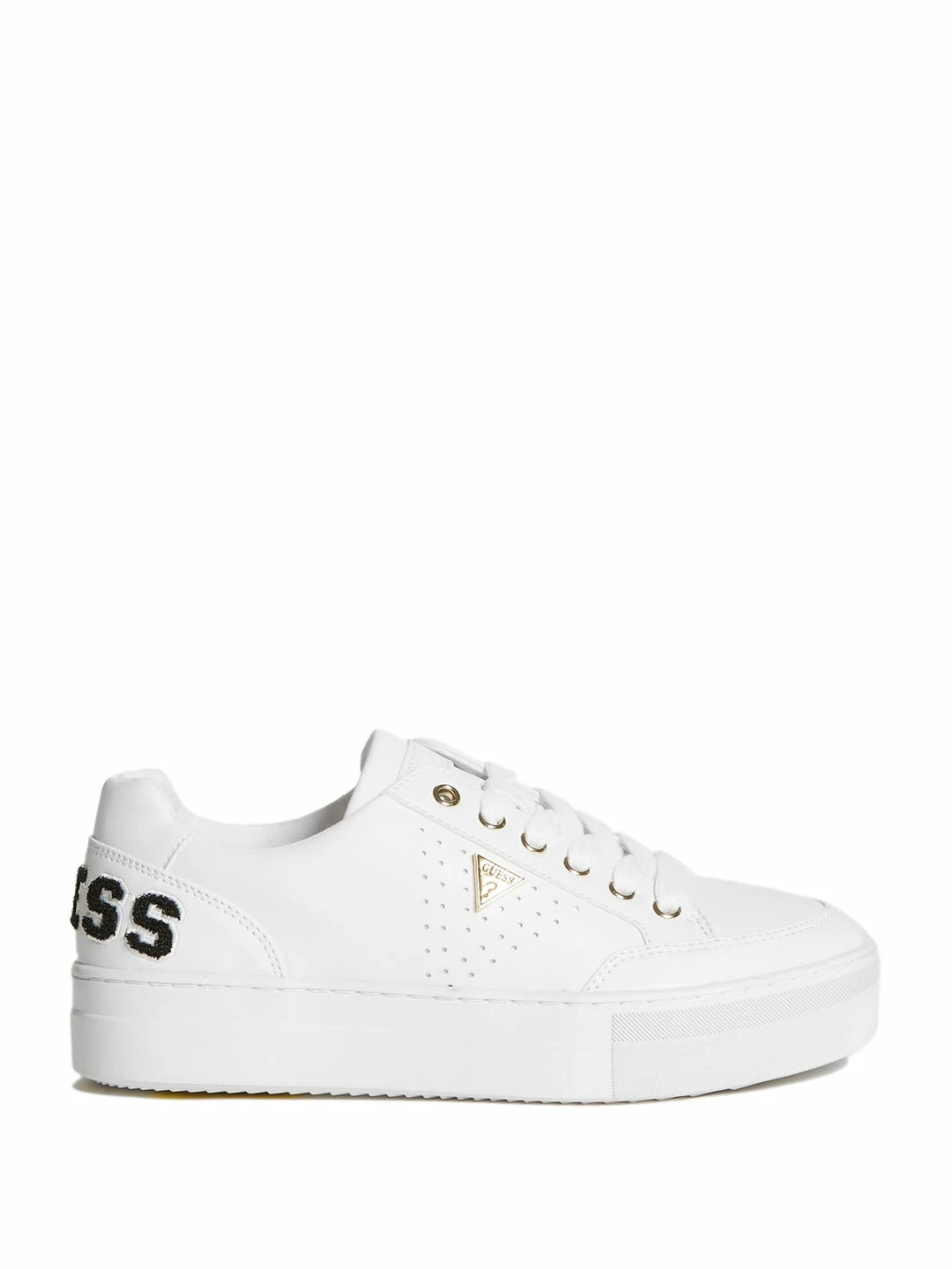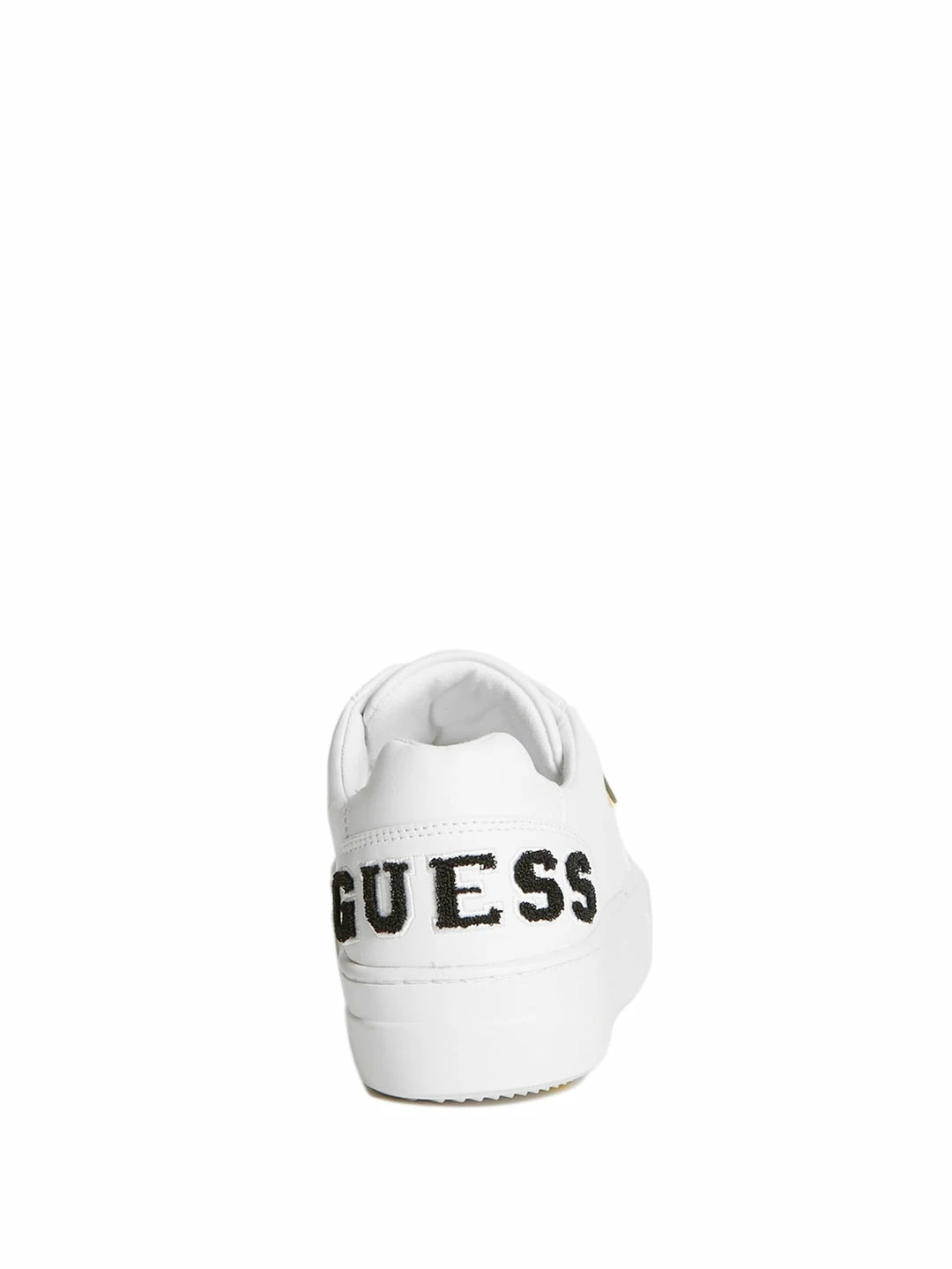 Mix up your style with these low-top faux-leather sneakers designed with a back varsity-inspired logo patch, perforated detailing and a lace-up closure.