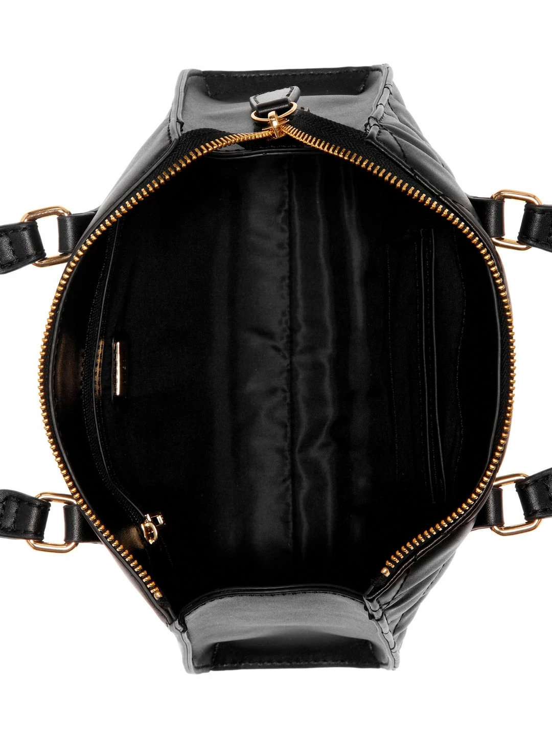 Take what you need in this faux-leather satchel designed in a classic frame silhouette, featuring a quilted fabrication with subtle embroidered Gs at the diamond points. Completed by rolled top handles and a detachable crossbody strap.
